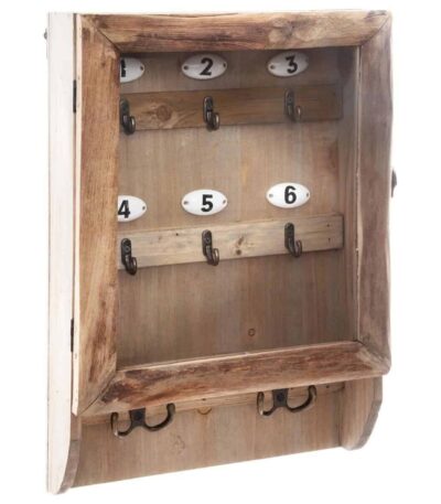 Cutie de chei Atmosphera Amalia cu 10 carlige, 30×40 cm, lemn masiv, design vintage, natur Mob360