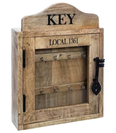 Cutie de chei Atmosphera Ornella cu 8 carlige si usa din sticla, 26×38 cm, natur Mob360