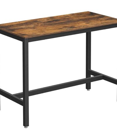 VASAGLE Masa de bar pentru bucatarie, dreptunghiulara, inalta, cadru de otel, 60x120x90cm, stil industrial, maro rustic si negru Mob360