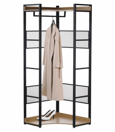 Etajeră de colţ, cu raft, stejar/negru, KILOS NEW TIP 5