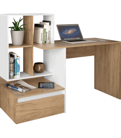 Masă PC, stejar artisan/alb, NEREO NEW