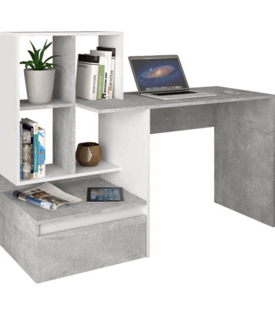Masă PC, beton/alb, NEREO NEW