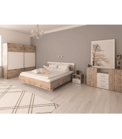 Set dormitor (pat 180×200 cm), stejar wotan/ alb, GABRIELA NEW