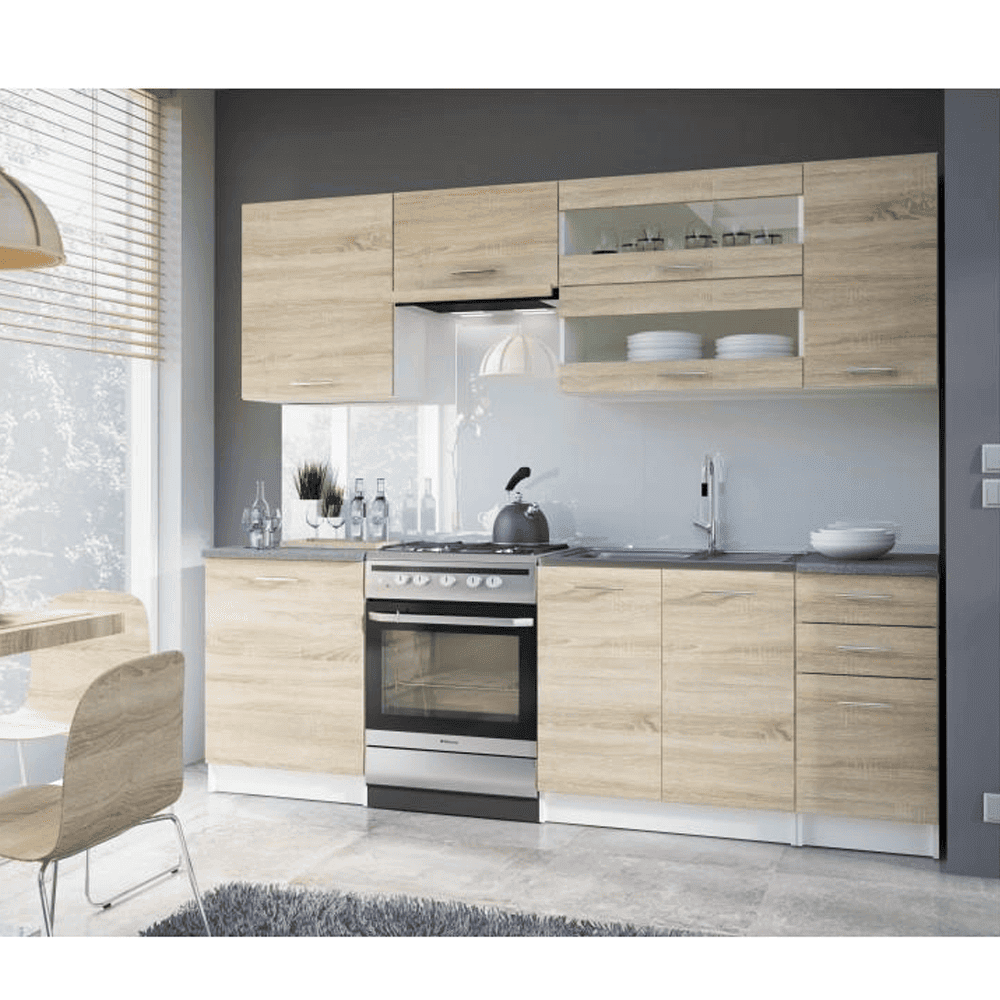Ansamblu bucătărie 2,4 m, stejar sonoma/alb, FABIANA