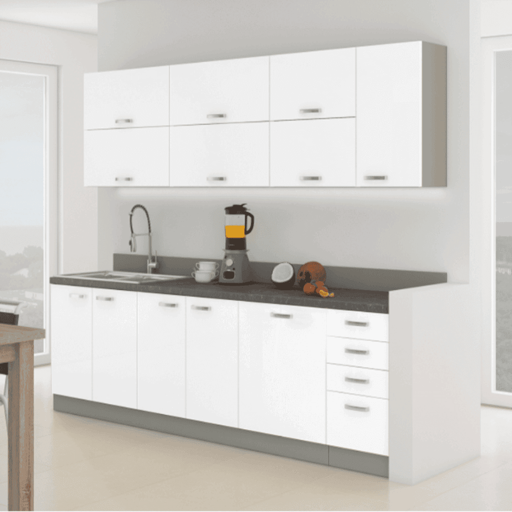 Ansamblu bucătărie, alb extra lucios/gri, PRADO