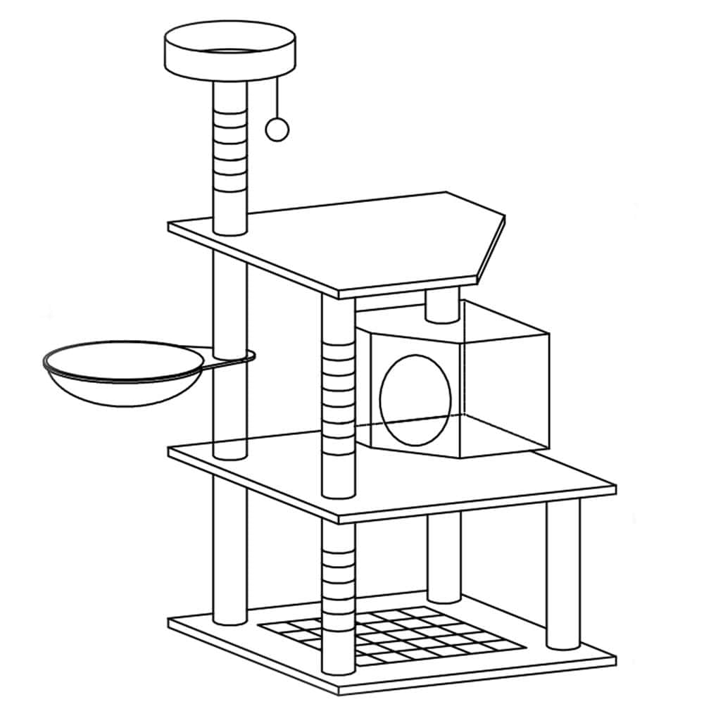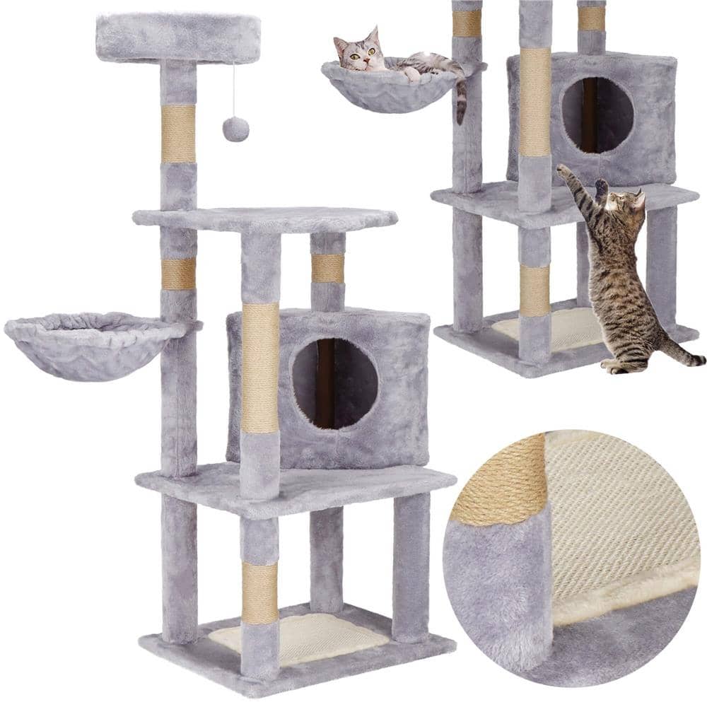 Ansamblu de joaca pentru pisici, cu loc pentru zgariat, ascuns, culcus, minge, 124cm, gri Mob360 – produs disponibil în magazinul Mob360.