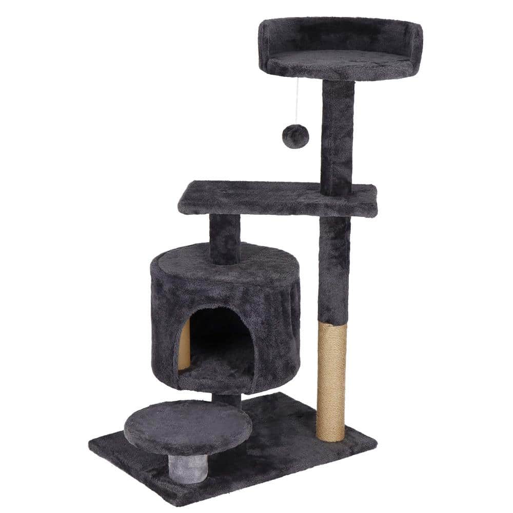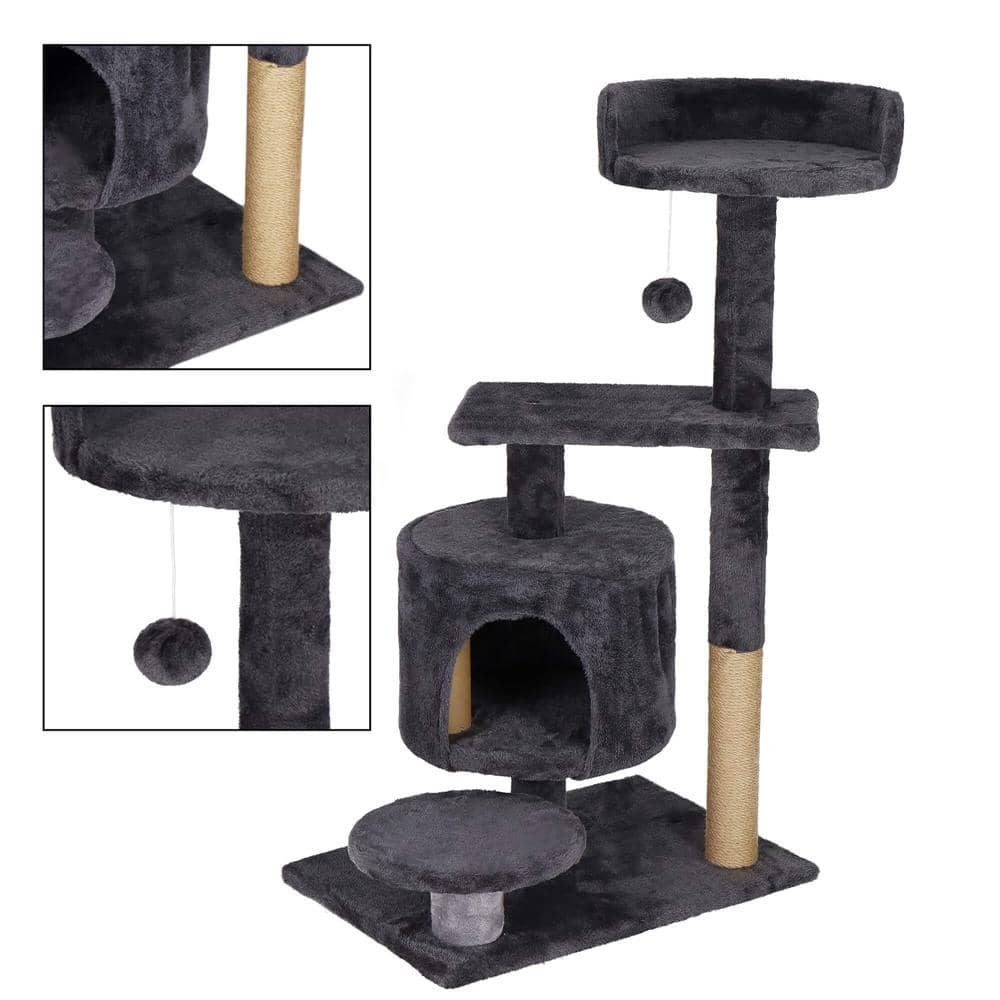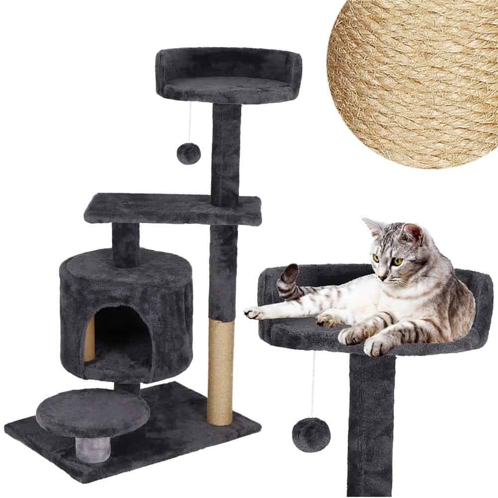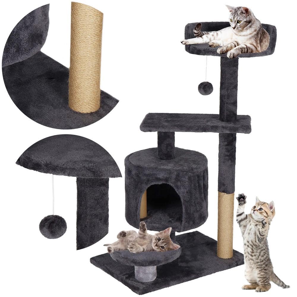 Ansamblu de joaca pentru pisici, cu loc pentru zgariat, ascuns, culcus, minge, 87cm, grafit Mob360