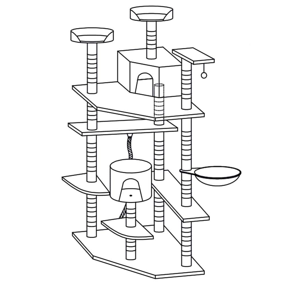 - Cu o varietate de niveluri si locuri ascunse de explorat, pisica ta va gasi o multime de moduri de a petrece timp activ si distractiv. Materiale naturale, sigure pentru pisici: sfoara din jurul stalpilor este fabricata din sisal, o fibra tare si foarte durabila.