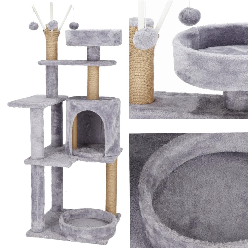 Ansamblu de joaca pentru pisici, cu loc pentru zgariat, ascuns, culcus, mingi, 127cm, gri Mob360