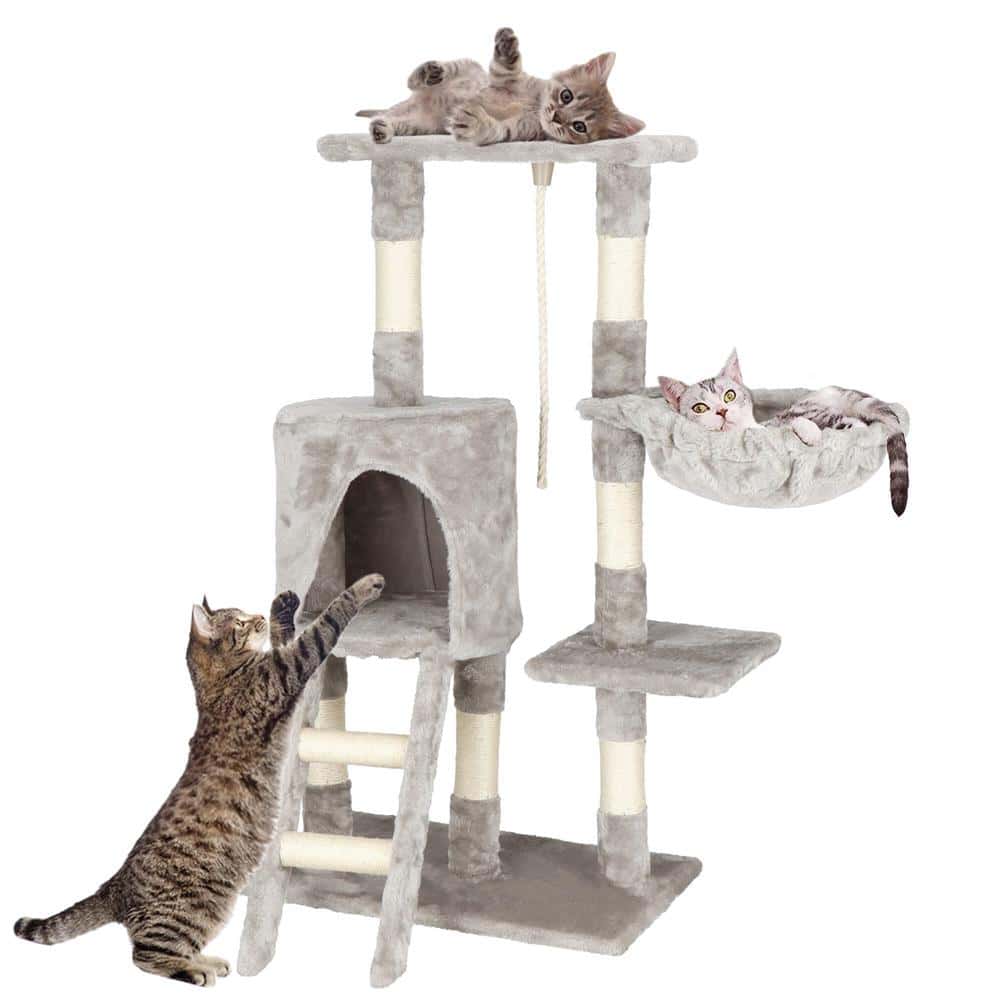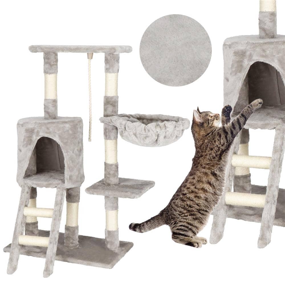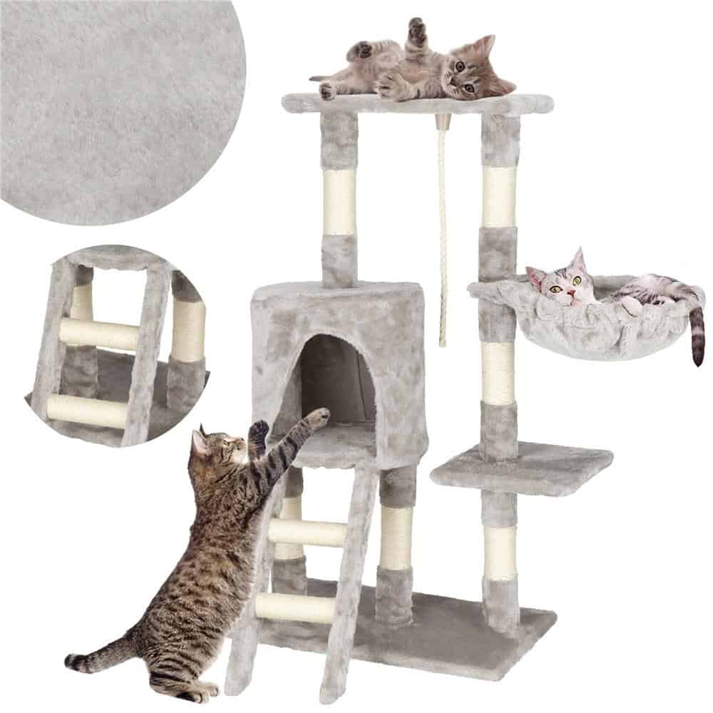 Ansamblu de joaca pentru pisici, cu loc pentru zgariat, ascuns, culcus, sfoara, 96cm, gri Mob360