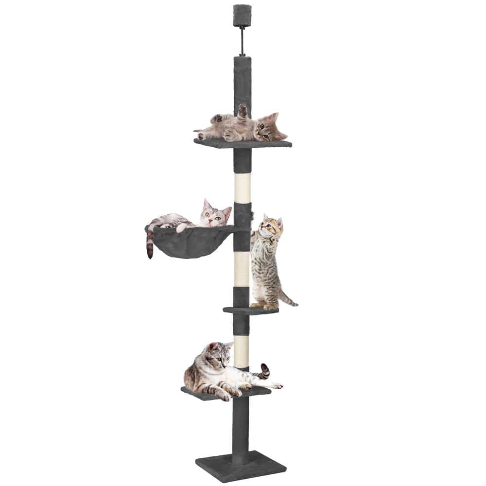 Ansamblu de joaca pentru pisici, tip stalp de catarat pana la tavan, inaltime reglabila, 240 – 265 cm, gri inchis Mob360