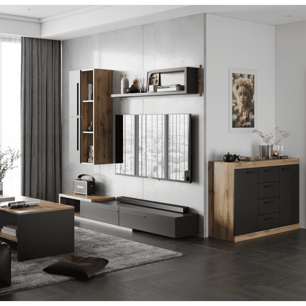 Ansamblu living, stejar Tacho/antracit, KALVADOS 2