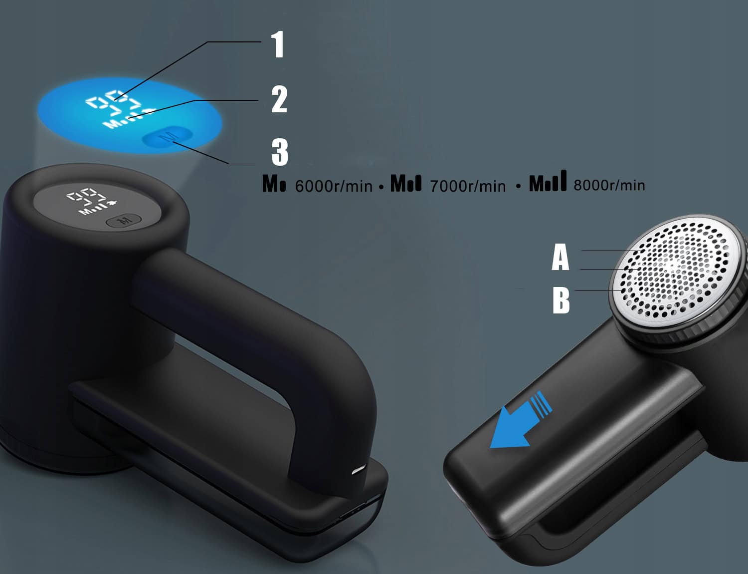- V 2A (conector de incarcare USB-C) Aparat de ras pentru haine/tapiterie alimentat de o baterie incorporata. Indeparteaza rapid bolusurile de pe pulovere, paltoane, lane, paturi, covoare, tapiterie etc. Aparatul nostru de barbierit modern cu baterie este un instrument avansat conceput special pentru taierea precisa si improspatarea hainelor. Echipat cu sase cutite mobile si reglare a vitezei, ofera un proces de taiere in trei etape pentru rezultate perfecte! Putere mare, pana la 3 trepte de viteza:
