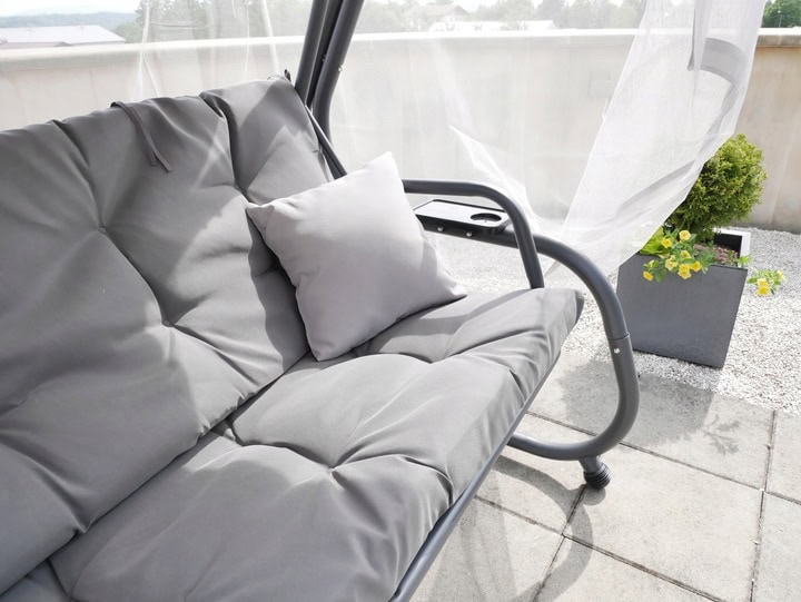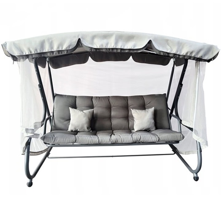 Balansoar leagan pat, 3 persoane, cu plasa tantari si perne, 350 kg, 220x130x175 cm, gri Mob360