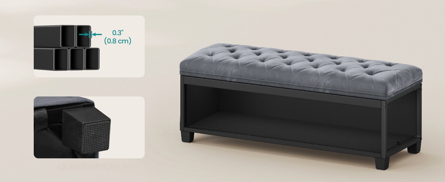 - Datorita panourilor solide din MDF si a intariturilor metalice de la colturile capacului, aceasta comoda poate sustine cu usurinta pana la 300 kg – un scaun sau o solutie de depozitare durabila si fiabila pentru dvs. Spatiu mare de depozitare: