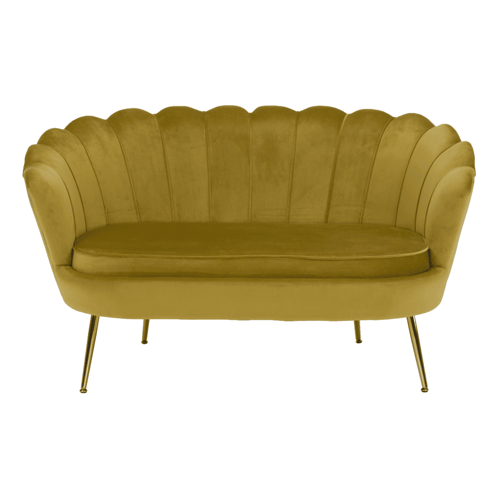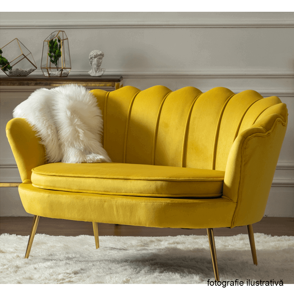 Bancă în stil Art-deco, catifea Velvet muştar/crom auriu, NOBLIN