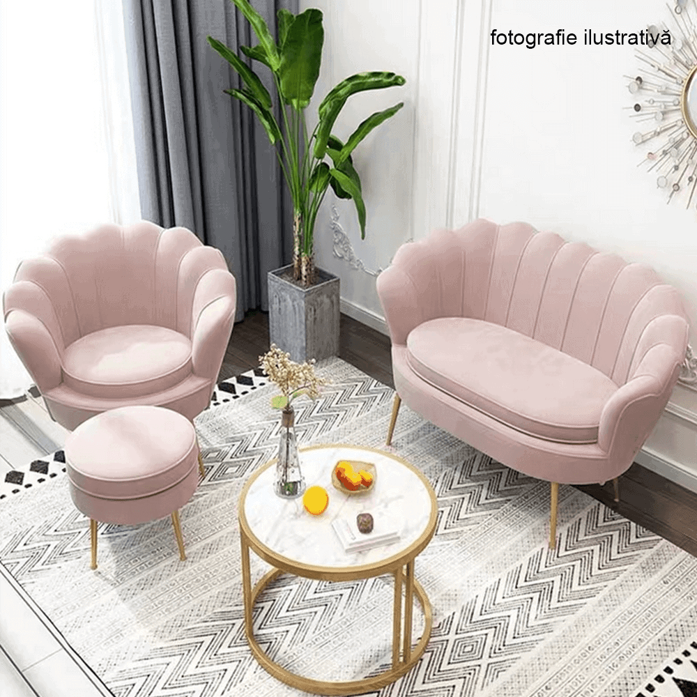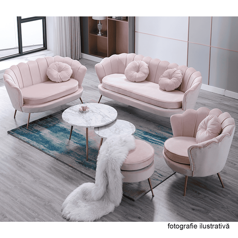 Bancă în stil Art-deco, catifea Velvet roz/crom auriu, NOBLIN