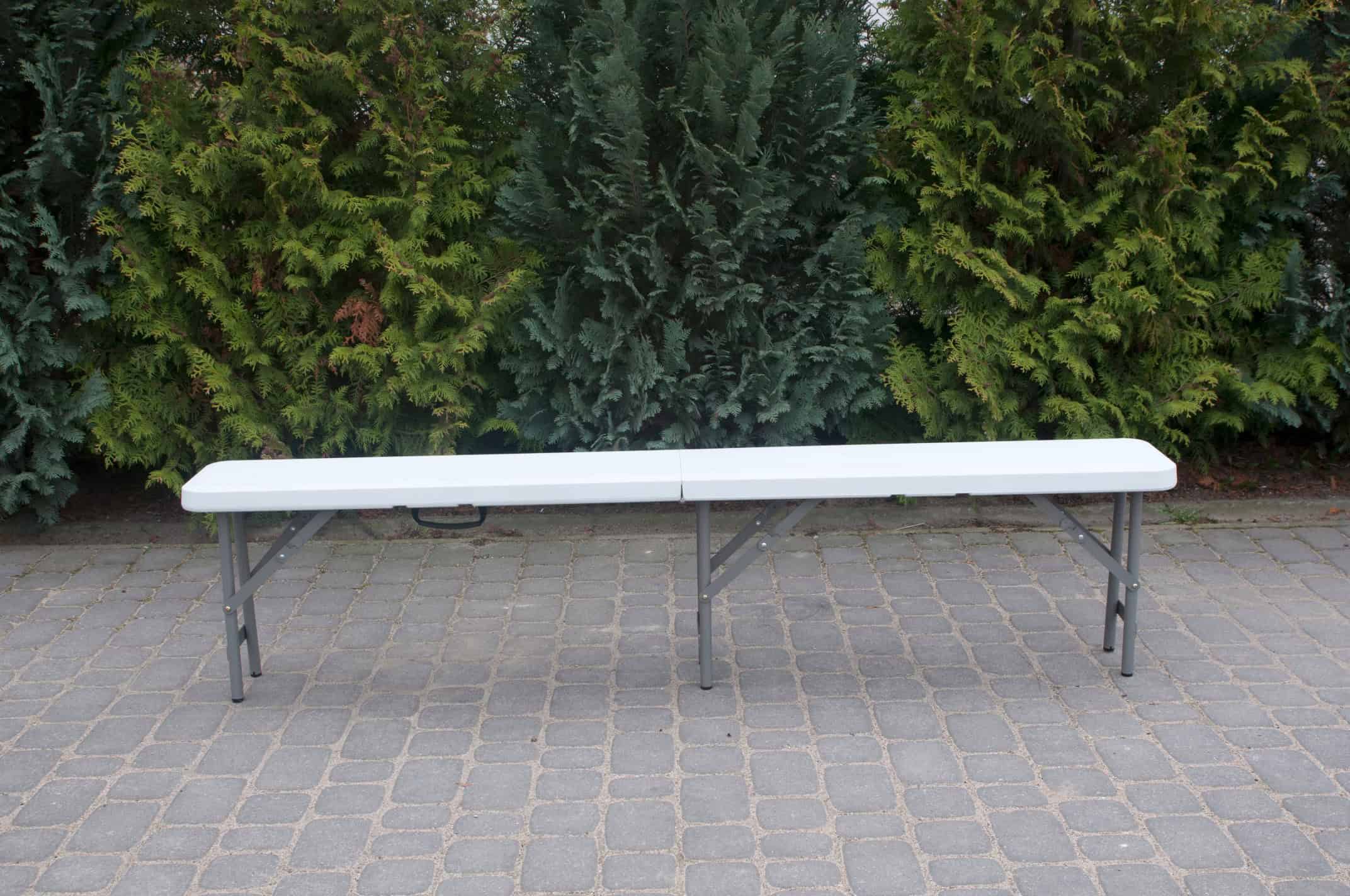 Banca pliabila pentru gradina sau catering, HDPDE, 180x24x42cm, alb Mob360
