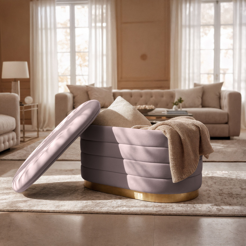 Bancheta tip puf cu depozitare, tapiterie velur, 80x42x42 cm, roz pudrat Mob360 – produs disponibil în magazinul Mob360.
