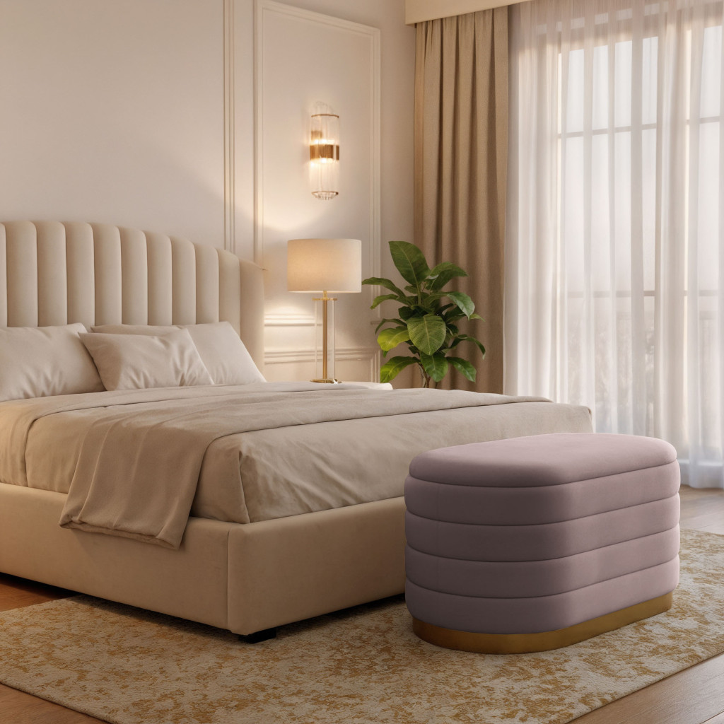 Bancheta tip puf cu depozitare, tapiterie velur, 80x42x42 cm, roz pudrat Mob360