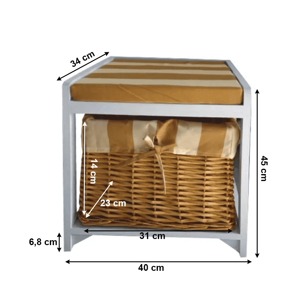 Băncuţă GINGER3 NEW cu coş de răchită, în combinaţie culoarea mierii cu alb, conceput ca spaţiu de stocare şi băncuţă.