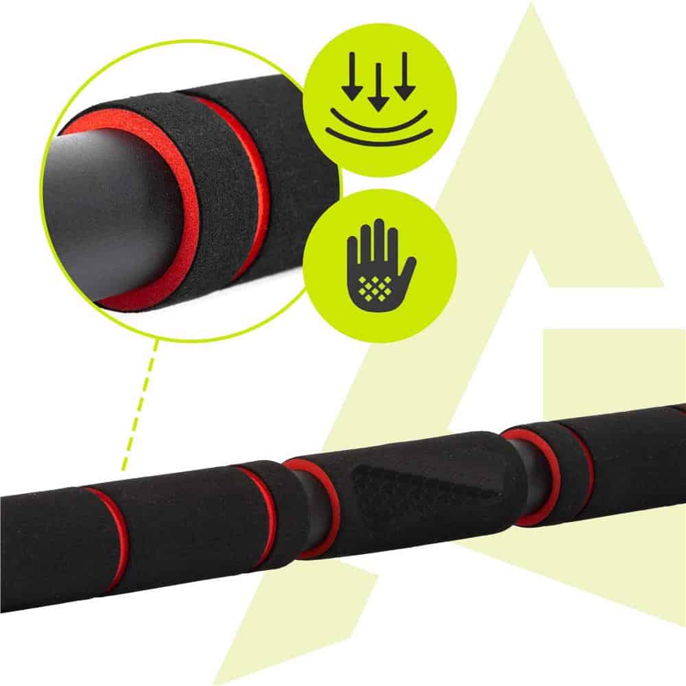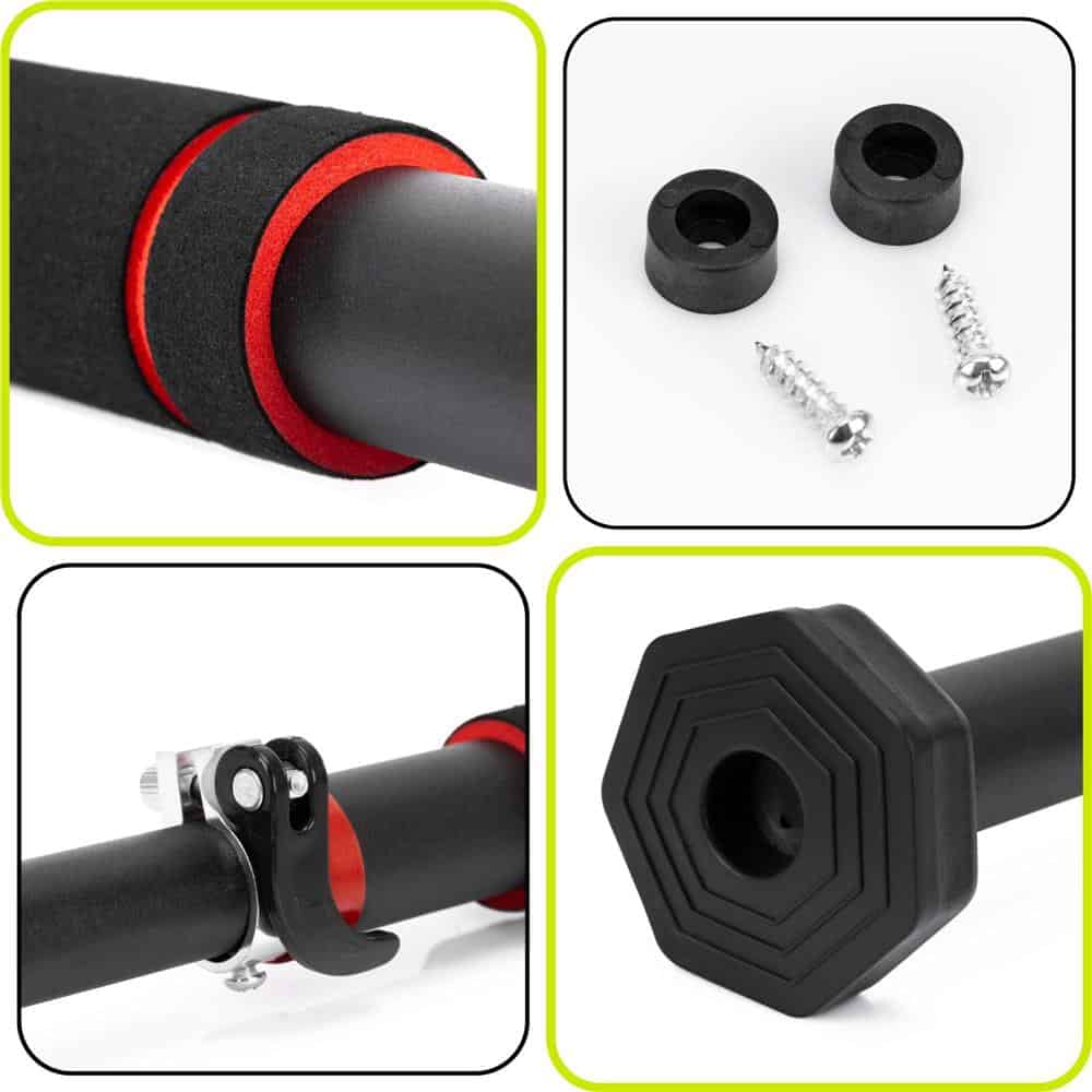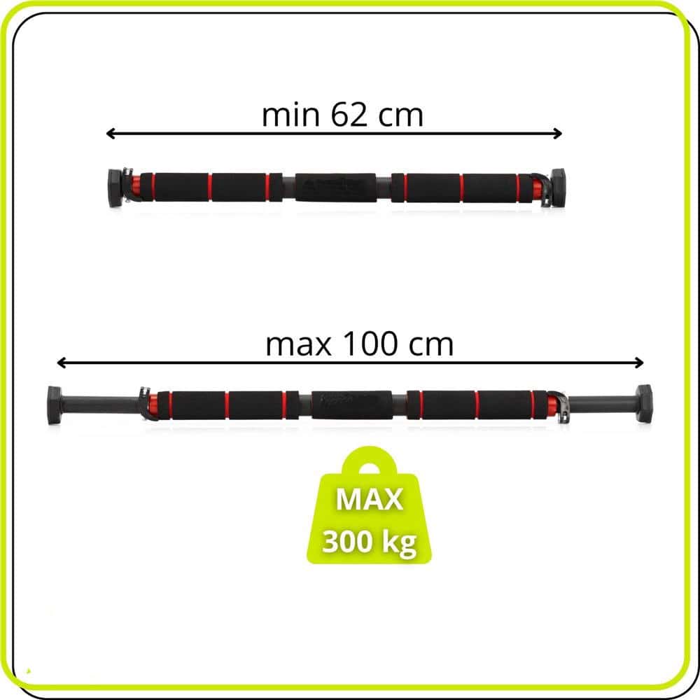- Bara pentru tractiuni reglabila este ideala pentru antrenamente de forta acasa. Constructia solida din otel ofera stabilitate si rezistenta ridicata, iar manerele acoperite cu spuma NBR asigura prindere confortabila si sigura. Sistemul reglabil permite montarea in majoritatea tocurilor de usa, iar suporturile pot fi fixate suplimentar pentru stabilitate sporita in timpul exercitiilor. Caracteristici principale: