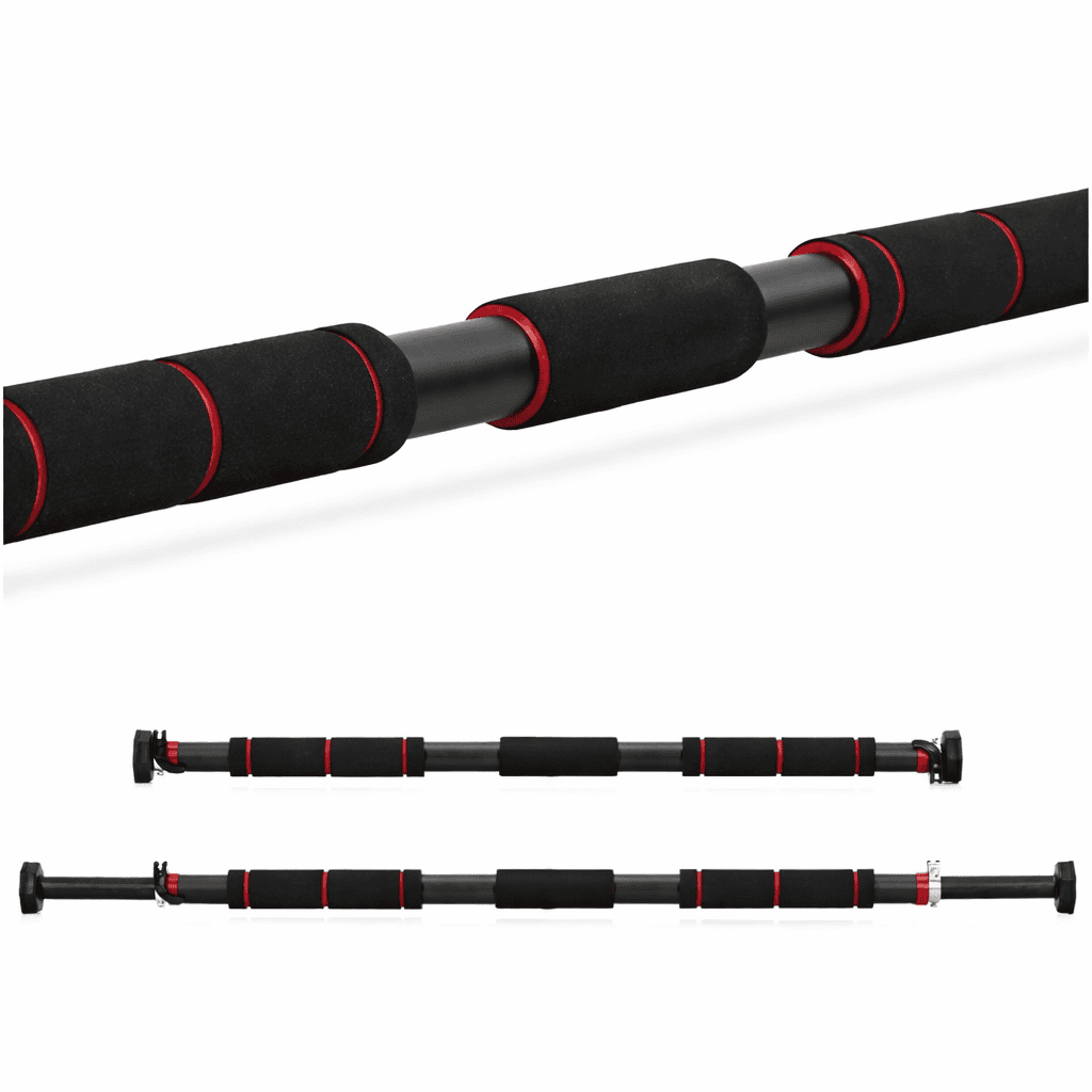 - Bara pentru tractiuni reglabila este ideala pentru antrenamente acasa, fiind potrivita pentru exercitii pentru spate, brate si abdomen. Constructia solida din otel asigura stabilitate si rezistenta ridicata, iar manerele acoperite cu spuma NBR ofera prindere confortabila si sigura. Sistemul reglabil permite montarea in majoritatea tocurilor de usa, iar suporturile pot fi fixate suplimentar pentru stabilitate maxima. Caracteristici principale:
