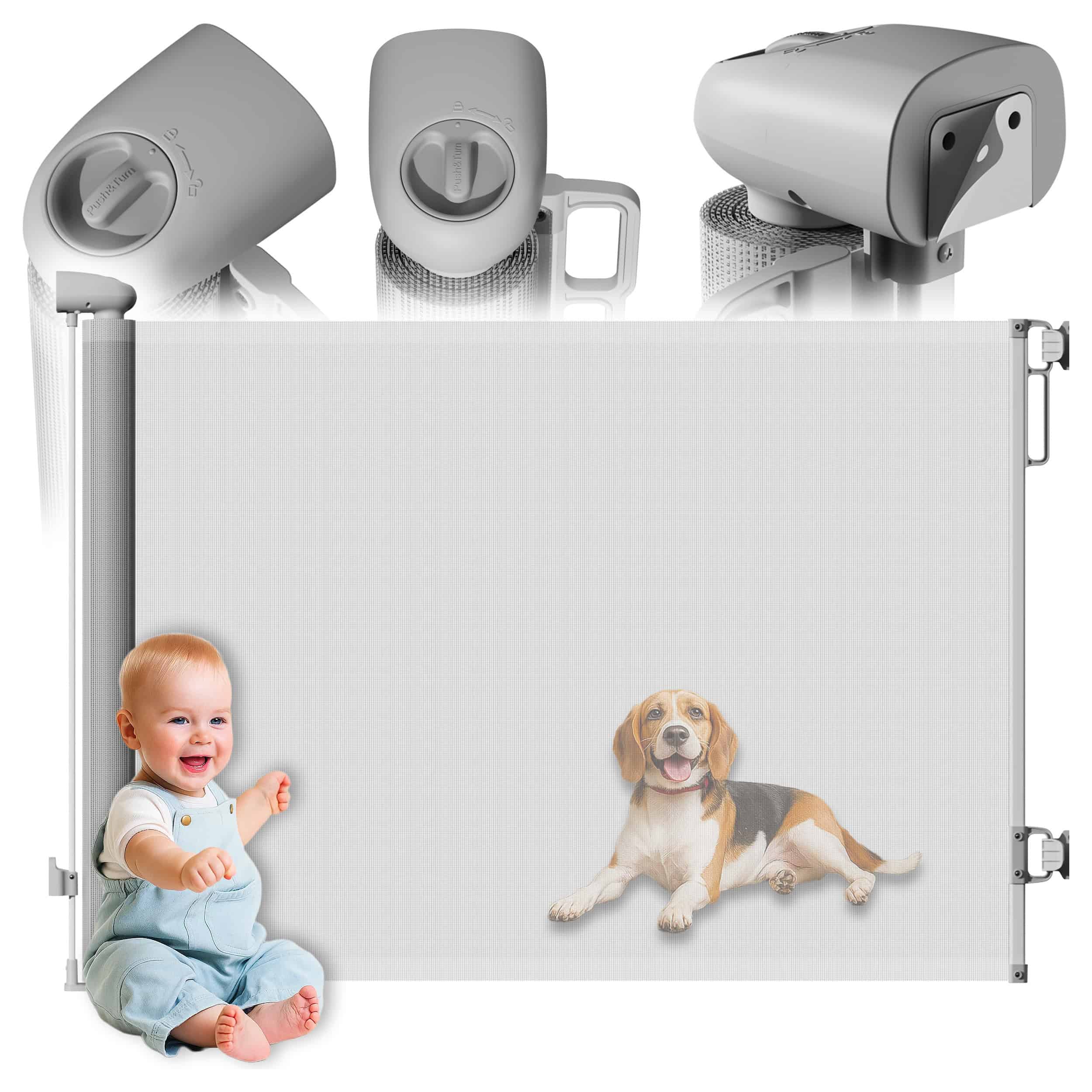 Bariera de siguranta pentru copii din material textil, reglabila, 78×150 cm, gri Mob360 – produs disponibil în magazinul Mob360.