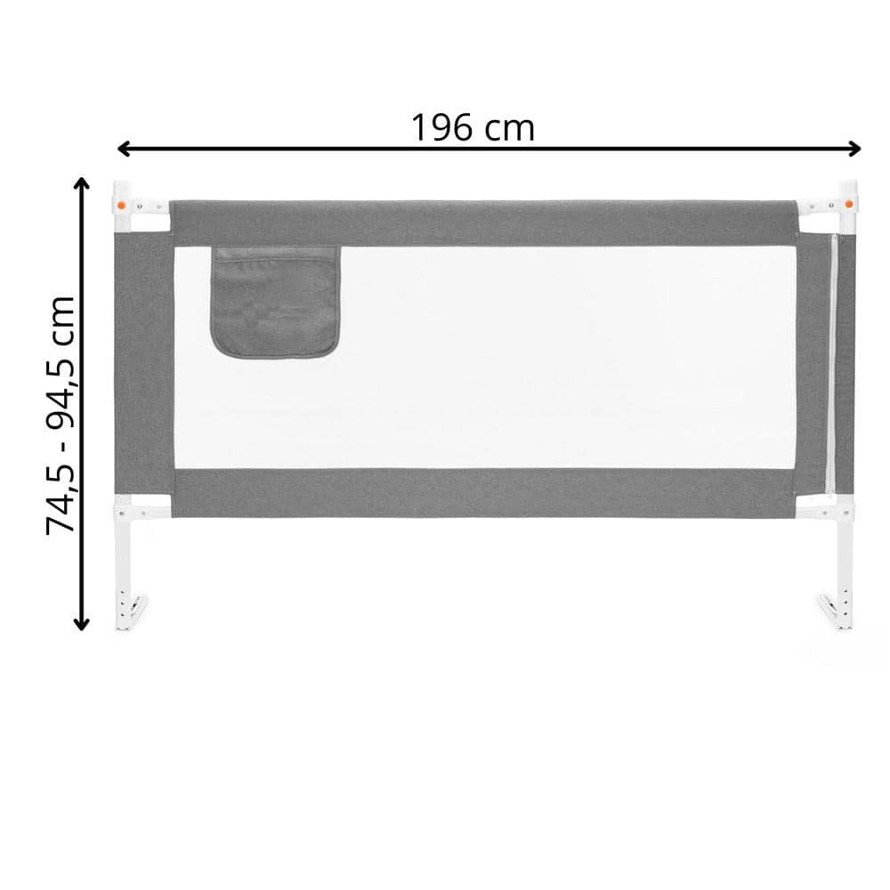 Bariera de siguranta pentru pat, protectie copii, 196 cm, reglabila pe inaltime 75-95 cm, gri Mob360
