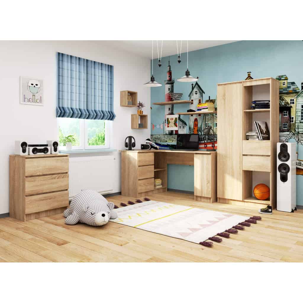BBirou colt stanga in L cu 3 sertare si rafturi, PAL laminat 16 mm, 155x85x77 cm, stejar sonoma Mob360