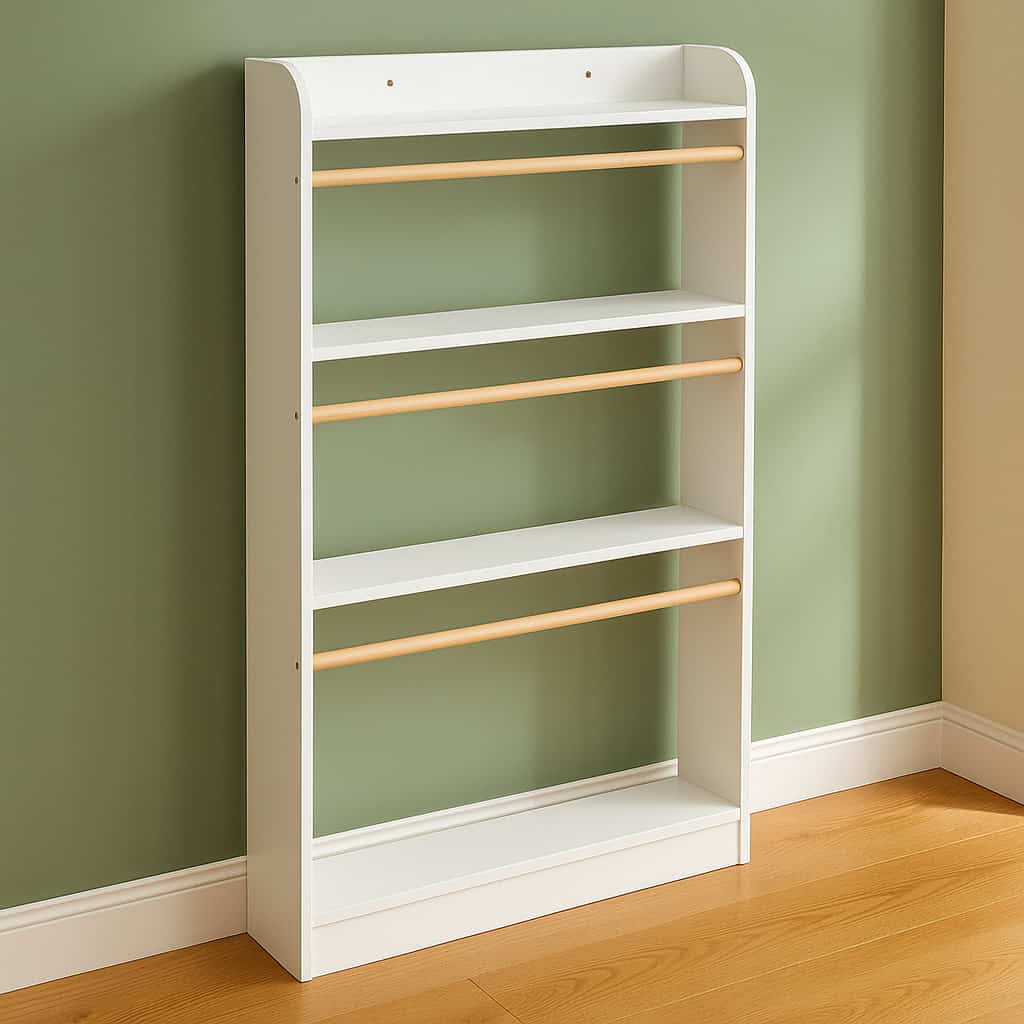 - Biblioteca Classic de la Atmosphera for kids este o piesa practica si estetica pentru camera celor mici. Cu 4 rafturi si bare de protectie, este ideala pentru carti, jucarii si decoratiuni, intr-un design sigur si accesibil copiilor. Caracteristici principale: