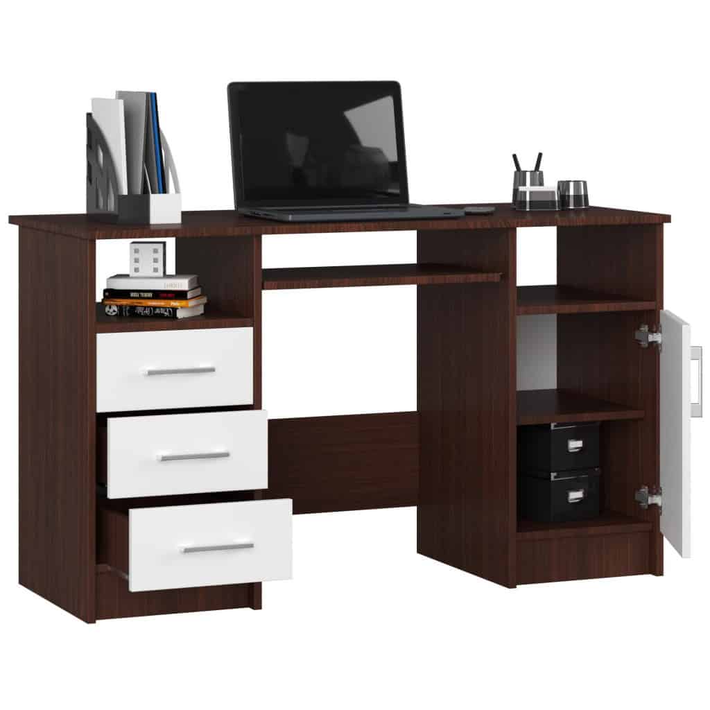 Birou ANA pentru calculator, cu 3 sertare si 1 usa, 124x52x74 cm, maro wenge si alb Mob360