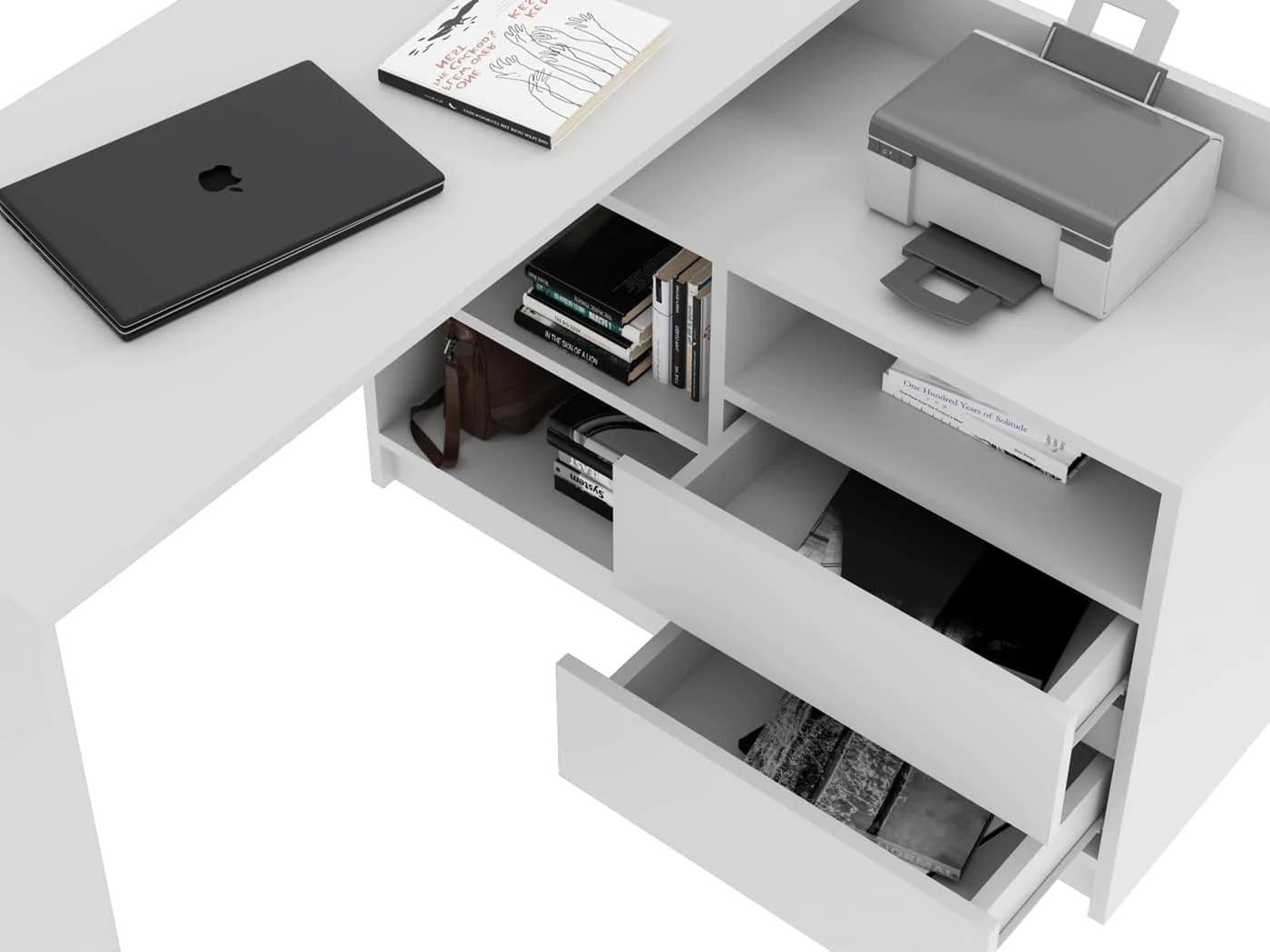 Birou colt Delta 120x50x75 cm cu comoda 100x42x72 cm, 2 sertare, montaj stanga/dreapta, alb Mob360 – produs disponibil în magazinul Mob360.
