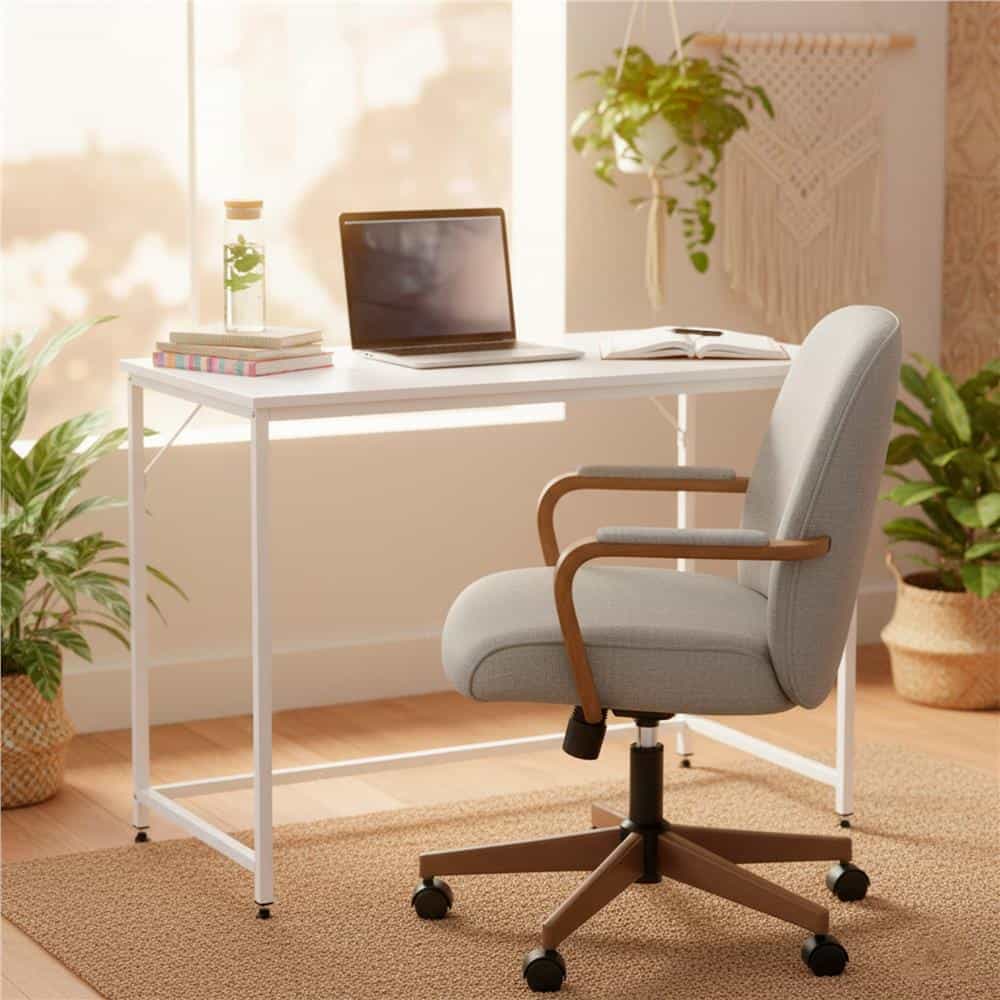 Birou cu blat MDF si cadru metalic, 100x50x76 cm, alb Mob360