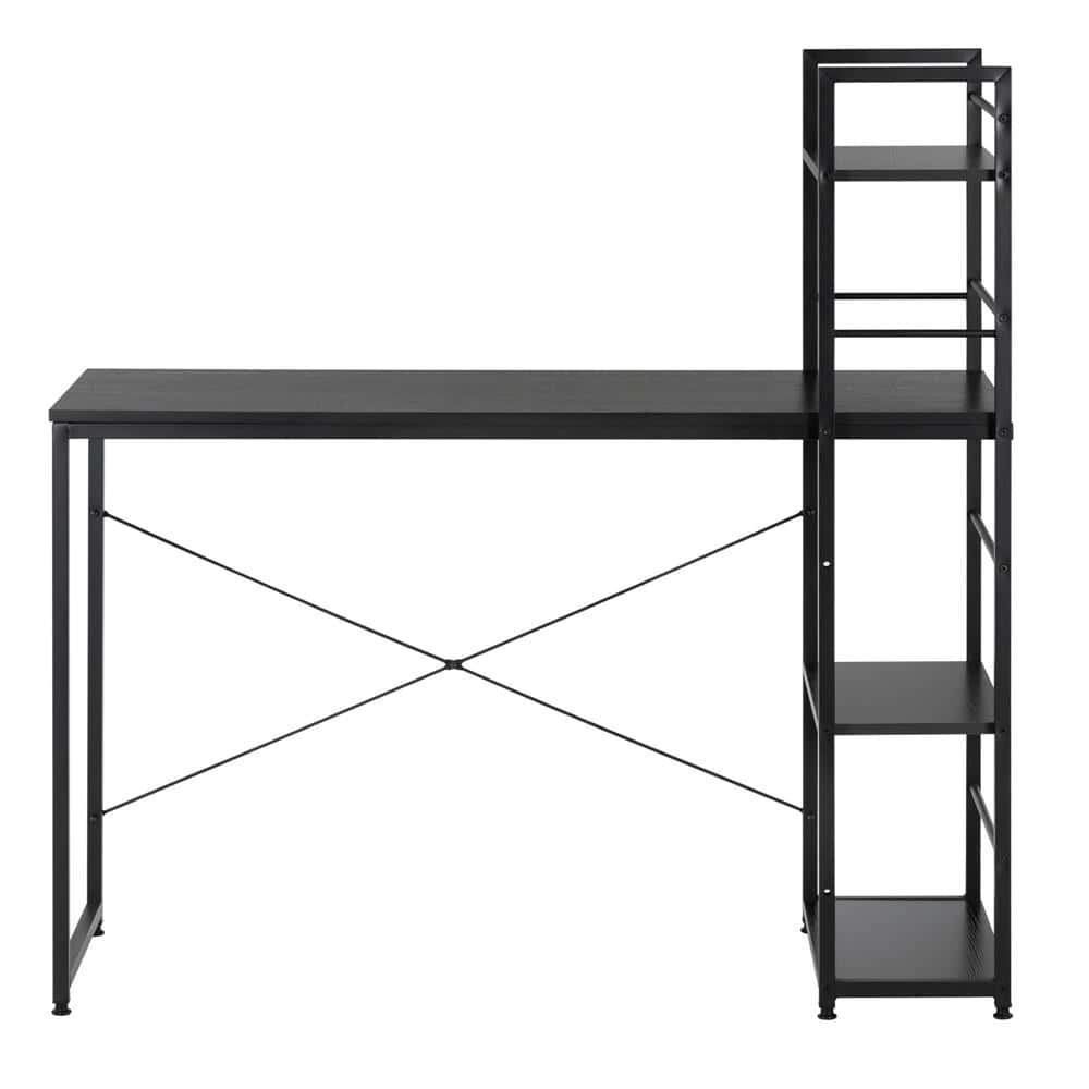 Birou cu blat MDF si rafturi laterale, cadru metalic, 120x48x122 cm, negru Mob360