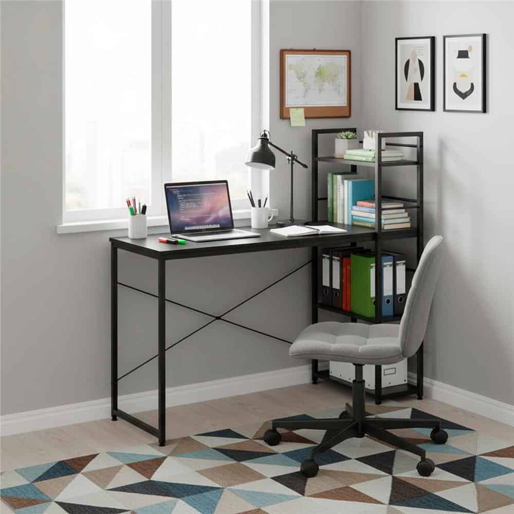 Birou cu blat MDF si rafturi laterale, cadru metalic, 120x48x122 cm, negru Mob360 – produs disponibil în magazinul Mob360.
