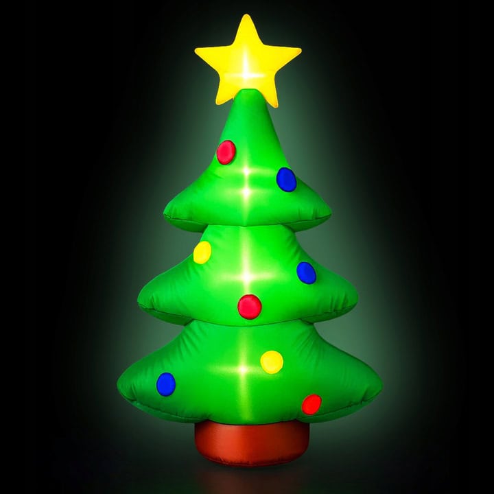Specificatii tehnice Culoare: Multicolor (verde cu decoratiuni colorate) Material: Poliester 190T Inaltime: Aproximativ 125 cm Latime: Aproximativ 68 cm Adancime: Aproximativ 33 cm Numar LED: 3 bucati Culoare LED: Alb Ventilator de umflare: 12V Lungime cablu alimentare: Aproximativ 2 m Accesorii incluse: 2 tarusi de fixare, 2 cordeline Utilizare: Interior / exterior Dimensiuni ambalaj: 18 x 16 x 10 cm Scurta descriere Brad gonflabil de Craciun cu decoratiuni colorate si stea luminoasa in varf, ideal pentru amenajarea festiva a gradinii, casei sau vitrinei unui magazin. Datorita iluminarii LED, emite o lumina placuta si creeaza o atmosfera calda si vesela. Este usor de montat, usor de depozitat si realizat din poliester rezistent. Caracteristici principale Iluminare LED cu lumina alba Gonflare rapida cu ventilator electric de 12V Material poliester 190T durabil Luminozitate excelenta si efect vizual spectaculos Montaj simplu si fixare sigura Potrivit pentru interior si exterior Ideal ca decor central de Craciun