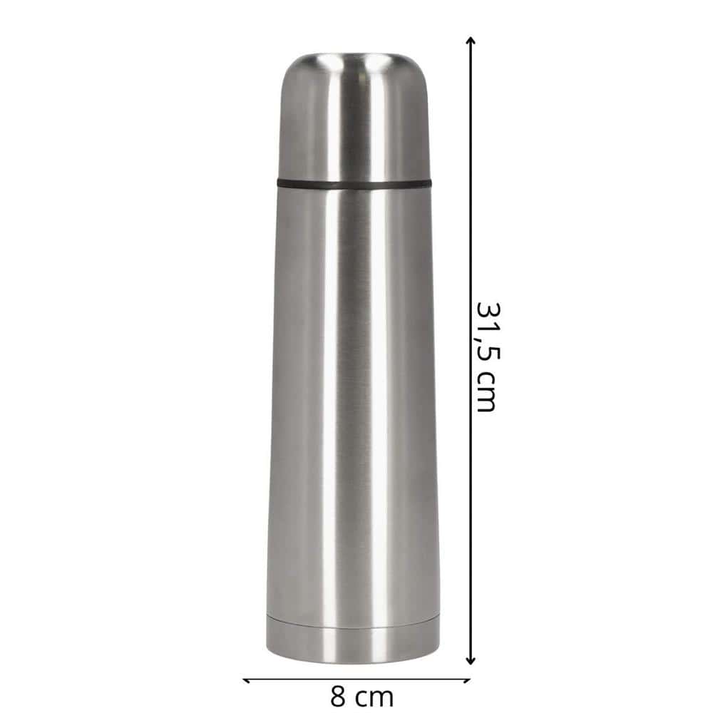 Material: otel inoxidabil 18/8 Capacitate: 1L Produs aprobat pentru contactul cu alimentele Dimensiuni: Inaltimea interna a termosului : 28 cm Inaltimea exterioara a termosului: 29 cm Inaltime totala: 31,5 cm Grosime in cel mai larg punct: 8 cm Grosime la punctul cel mai ingust: 8 cm: 5,3 cm Diametrul bazei: 8 cm Capac termos: 5,7 x 6 cm (H x L) Termosurile din otel au un numar mare de avantaje. Otelul inoxidabil nu absoarbe mirosurile, ceea ce elimina problema aromei de cafea sau de ceai atunci cand este reutilizat. Termosurile din otel inoxidabil sunt, de asemenea, durabile si nu ruginesc, asa ca va vor servi pentru o perioada lunga de timp. Este produsul ideal pentru calatorii! Pastreaza bautura la temperatura perfecta timp de pana la 24 de ore! Fabricat din otel inoxidabil – durabil, sigur pentru sanatate, usor de curatat, nu absoarbe mirosurile Capacul etans – asigura transportul in siguranta, fara risc de scurgere, precum si deschiderea si inchiderea rapida si usoara Siguranta – aprobat pentru contactul cu alimentele. Versatila – perfecta pentru calatorii, munca, scoala. Usor de pastrat curat – fara intretinere complicata, fara rugina Izolatia in vid presupune crearea unui vid intre cele doua straturi ale termosului. Acest lucru reduce schimbul de temperatura intre interior si exterior. Prin urmare, bauturile raman calde sau reci mult mai mult timp. Unicitatea acestui termos consta in simplitatea sa eleganta. Pur si simplu desurubati capacul si acesta se transforma intr-o ceasca practica