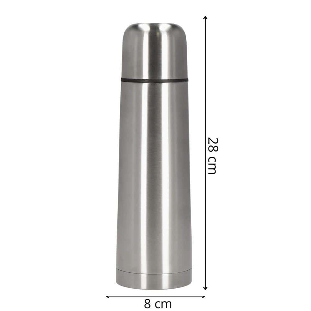 Material: otel inoxidabil 18/8 Capacitate: 0.75L Produs aprobat pentru contactul cu alimentele Dimensiuni: Inaltimea interna a termosului: 23 cm Inaltimea exterioara a termosului: 26 cm Inaltime totala: 28 cm Grosime in cel mai larg punct: 8 cm Grosimea la punctul cel mai ingust: 8 cm 5,3 cm Diametrul bazei: 8 cm Capac termos: 5,7 x 6 cm (H x L) Termosurile din otel au un numar mare de avantaje. Otelul inoxidabil nu absoarbe mirosurile, ceea ce elimina problema aromei de cafea sau de ceai atunci cand este reutilizat. Termosurile din otel inoxidabil sunt, de asemenea, durabile si nu ruginesc, asa ca va vor servi pentru o perioada lunga de timp. Este produsul ideal pentru calatorii! Pastreaza bautura la temperatura perfecta timp de pana la 24 de ore! Fabricat din otel inoxidabil – durabil, sigur pentru sanatate, usor de curatat, nu absoarbe mirosurile Capacul etans – asigura transportul in siguranta, fara risc de scurgere, precum si deschiderea si inchiderea rapida si usoara Siguranta – aprobat pentru contactul cu alimentele. Versatila – perfecta pentru calatorii, munca, scoala. Usor de pastrat curat – fara intretinere complicata, fara rugina Izolatia in vid presupune crearea unui vid intre cele doua straturi ale termosului. Acest lucru reduce schimbul de temperatura intre interior si exterior. Prin urmare, bauturile raman calde sau reci mult mai mult timp. Unicitatea acestui termos consta in simplitatea sa eleganta. Pur si simplu desurubati capacul si acesta se transforma intr-o ceasca practica