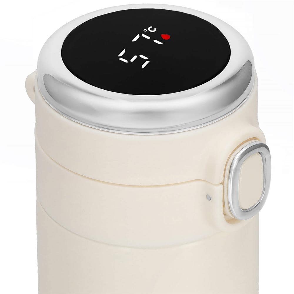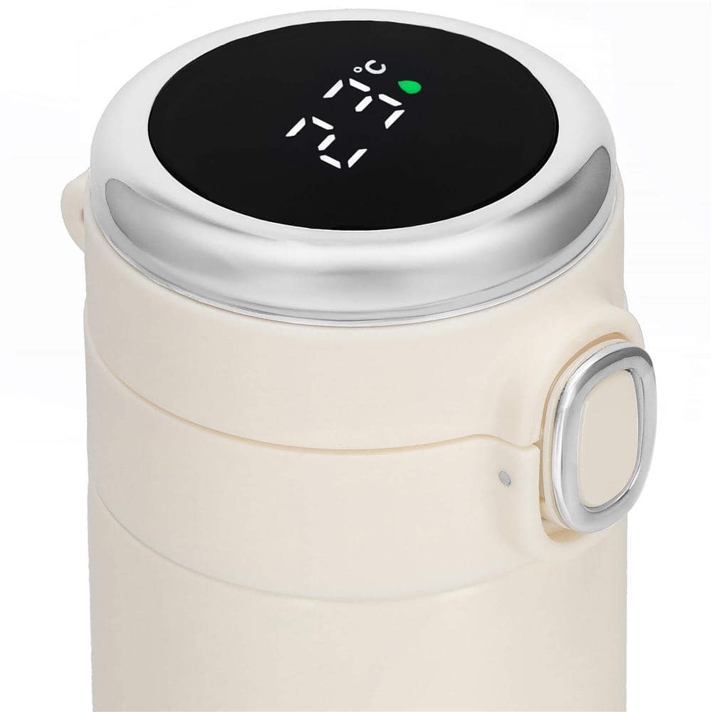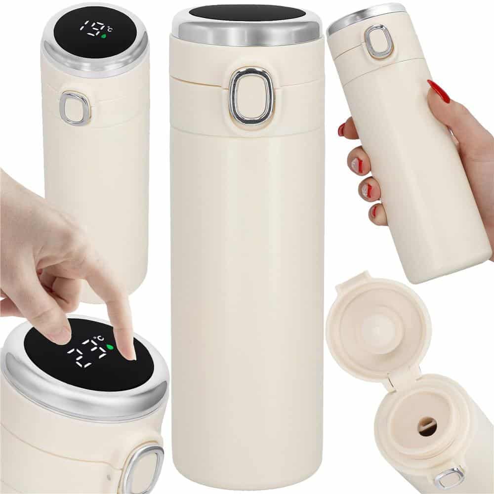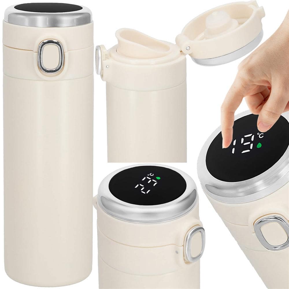 Cana termos Smart, inox, display LED, afisare temperatura, 420ml, 20cm, crem Mob360 – produs disponibil în magazinul Mob360.
