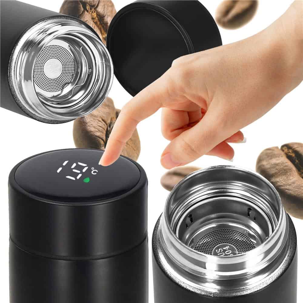 Cana termos Smart, inox, display LED, afisare temperatura, 500ml, 23cm, negru Mob360 – produs disponibil în magazinul Mob360.