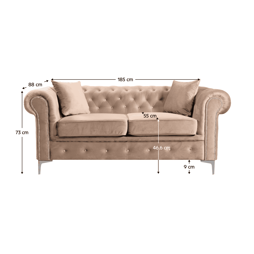 Canapea 2 locuri, stofă maro deschis Velvet, ROMANO