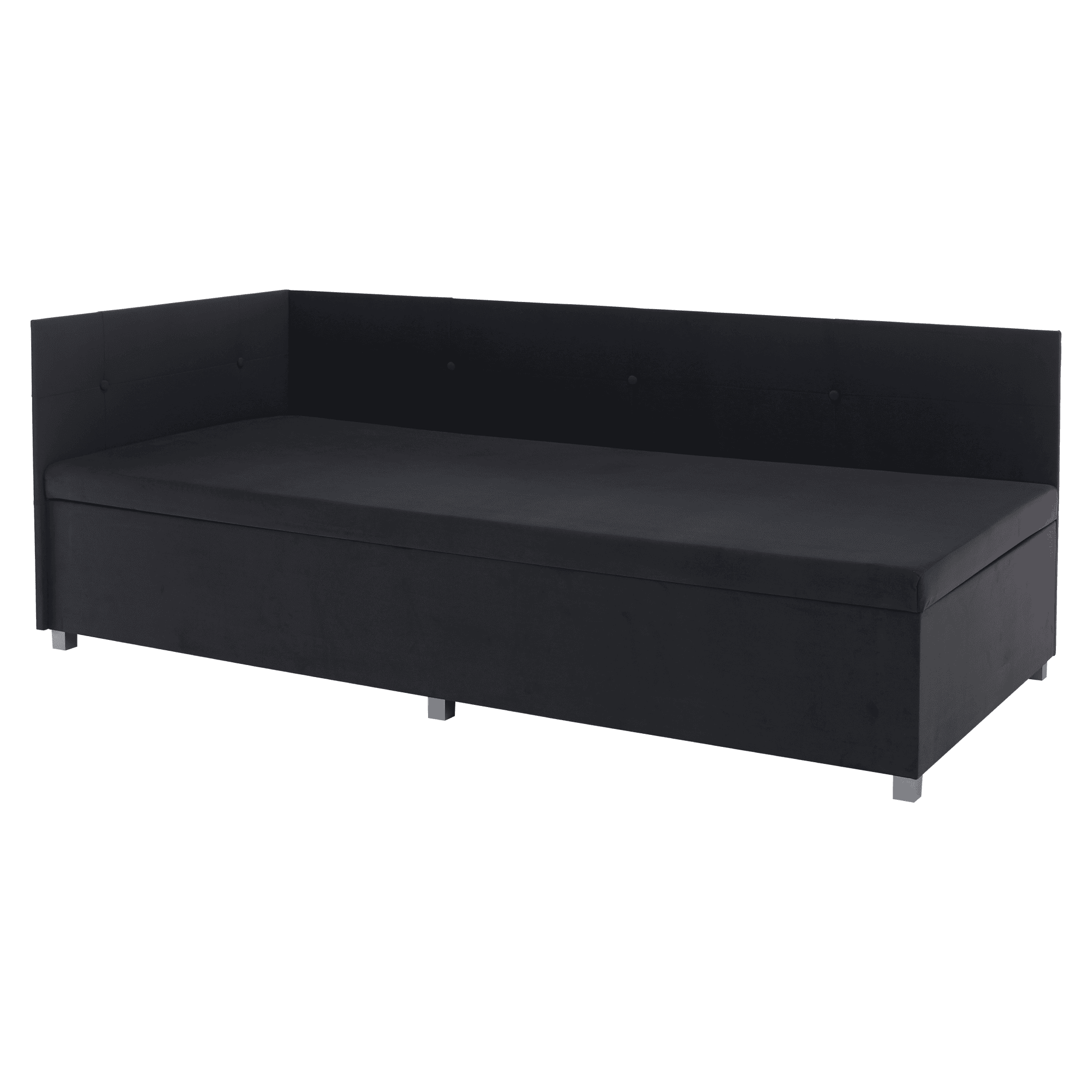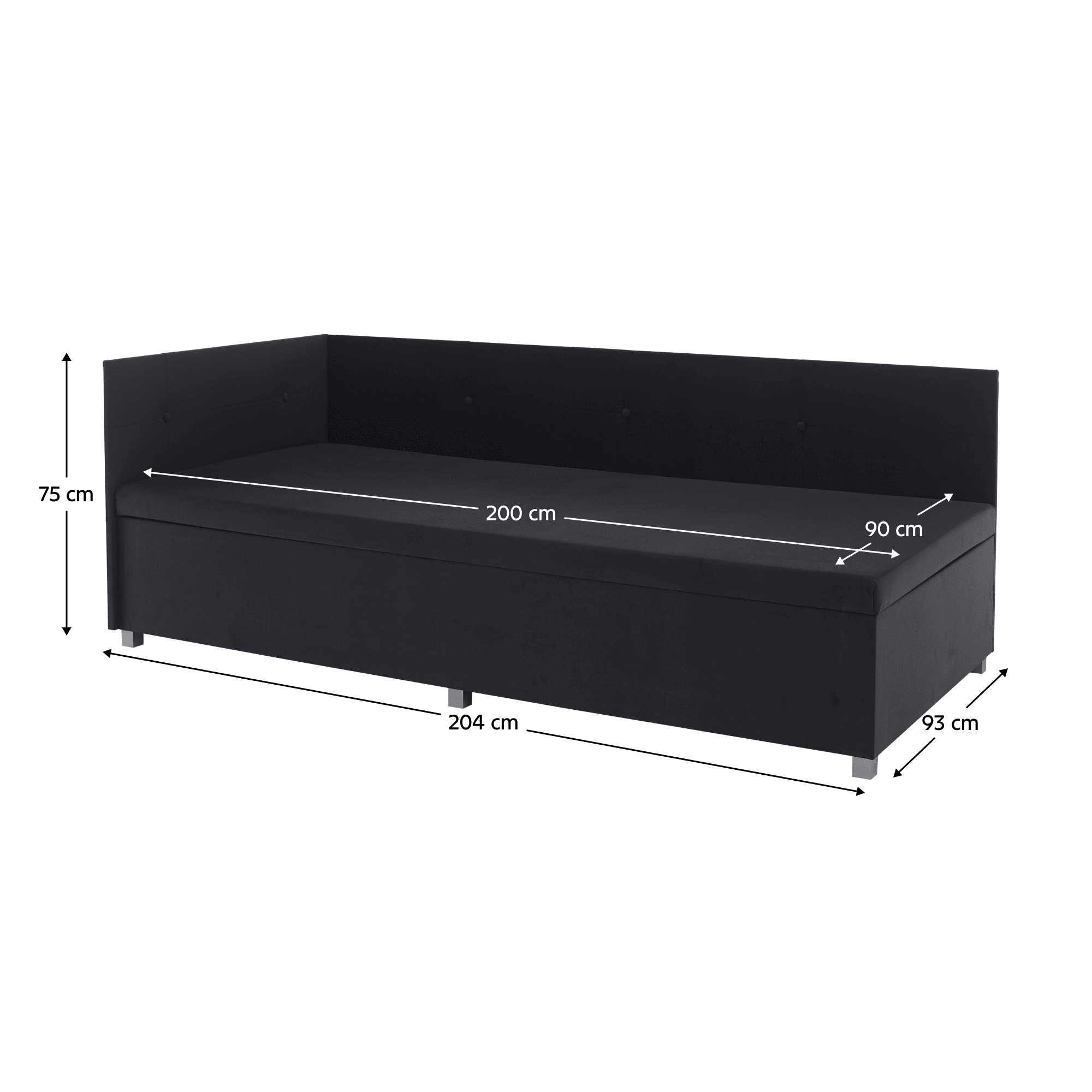 Material: Material: ţesătură Trinity 34 Rezistenţa ţesăturii la frecare conform testului Martindale: 210 000 de cicluri de frecare Miezul canapelei: spumă pur T28 Culoare: gri Dimensiuni (Lxlxh): 93x204x75 cm Suprafaţa pentru dormit (Lxl): 90×200 cm Înălţime de la sol la saltea: 42 cm Portanţă: 110 kg Fermitate saltea T3 H3 Universal Compartiment de depozitare Mecanism cu balamale laterale Frontala înaltă Laterale practice Laterale care previn uzura peretelui Frontală matlasată Nasturi decorativi Livrat dezasamblat