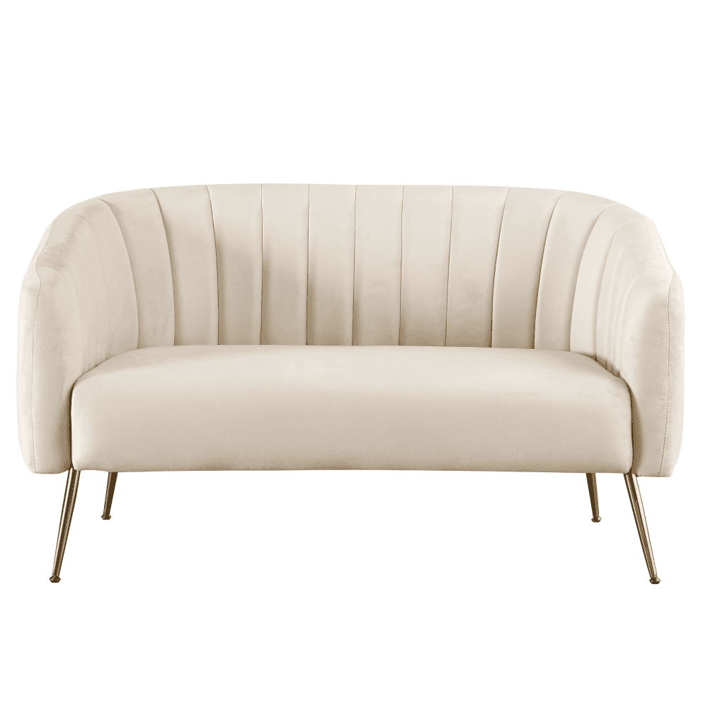 Canapea de design cu 2 locuri, ţesătură Velvet bej/gold crom-auriu, BAGY