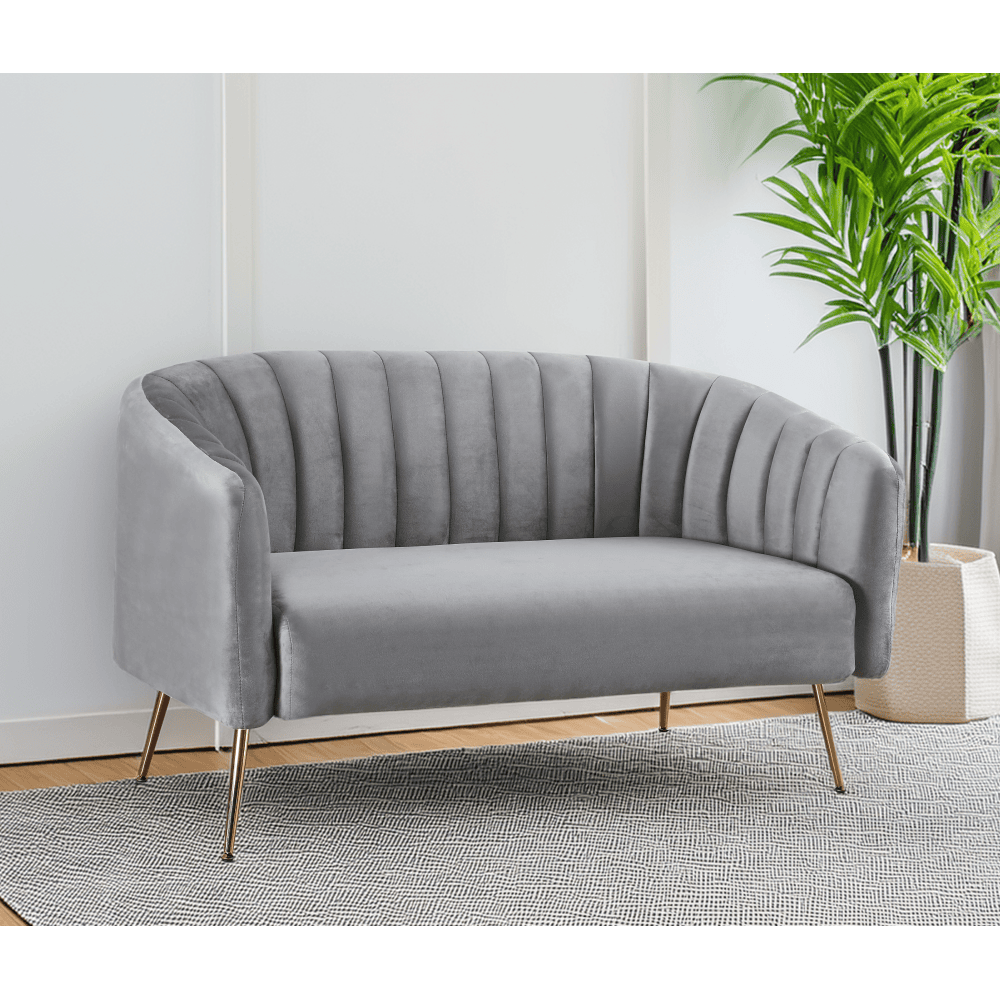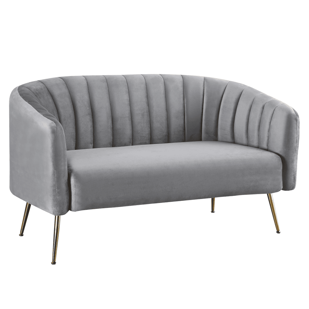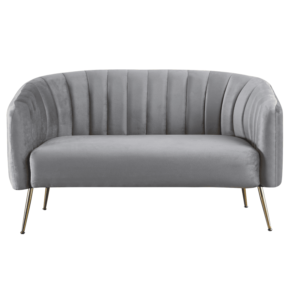 Canapea de design cu 2 locuri, ţesătură Velvet gri/gold crom-auriu, BAGY