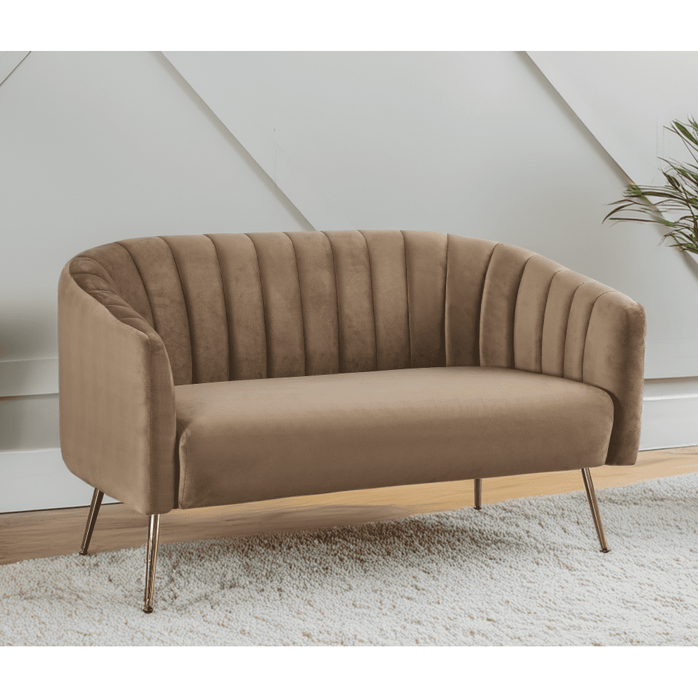 Canapea de design cu 2 locuri, ţesătură Velvet maro/gold crom-auriu, BAGY