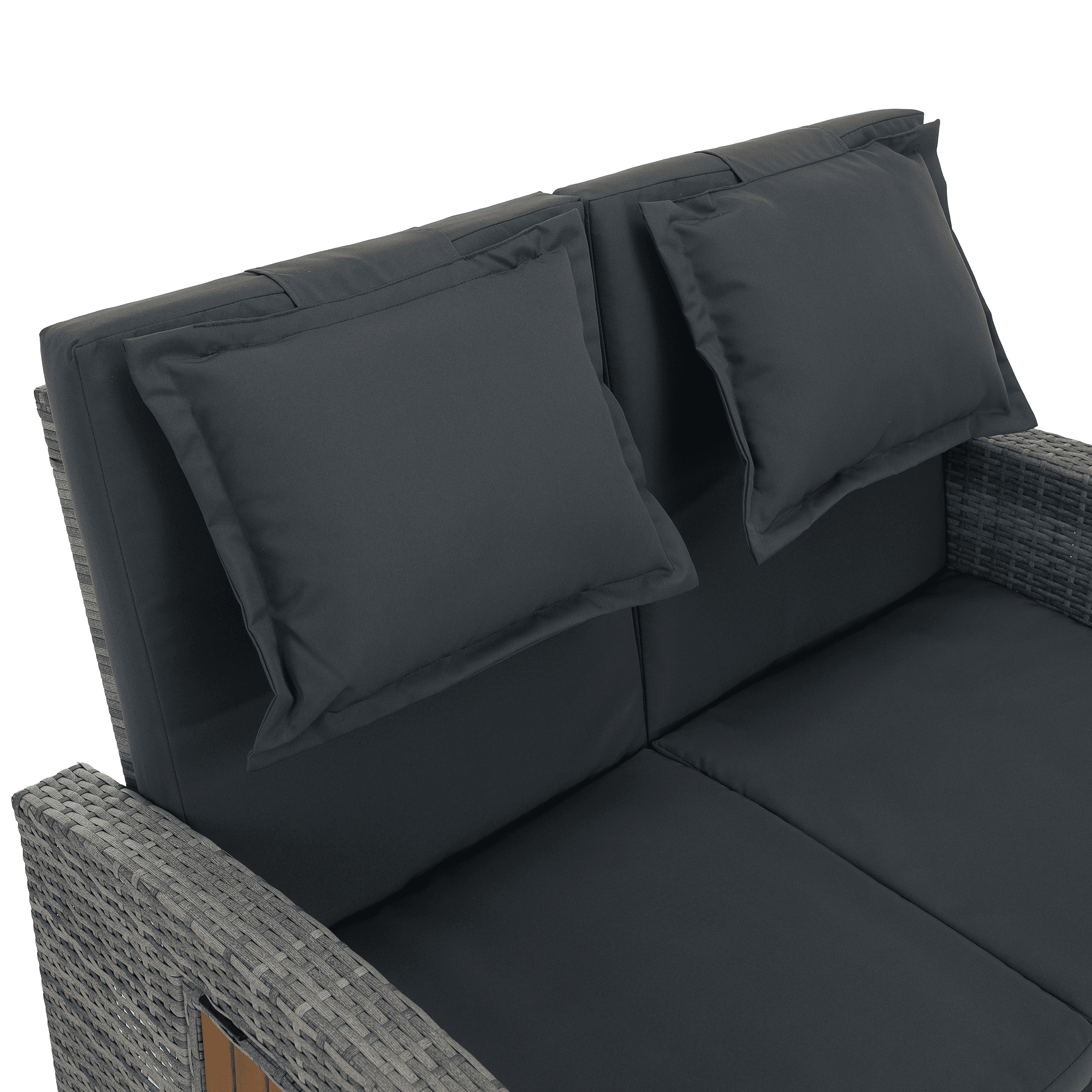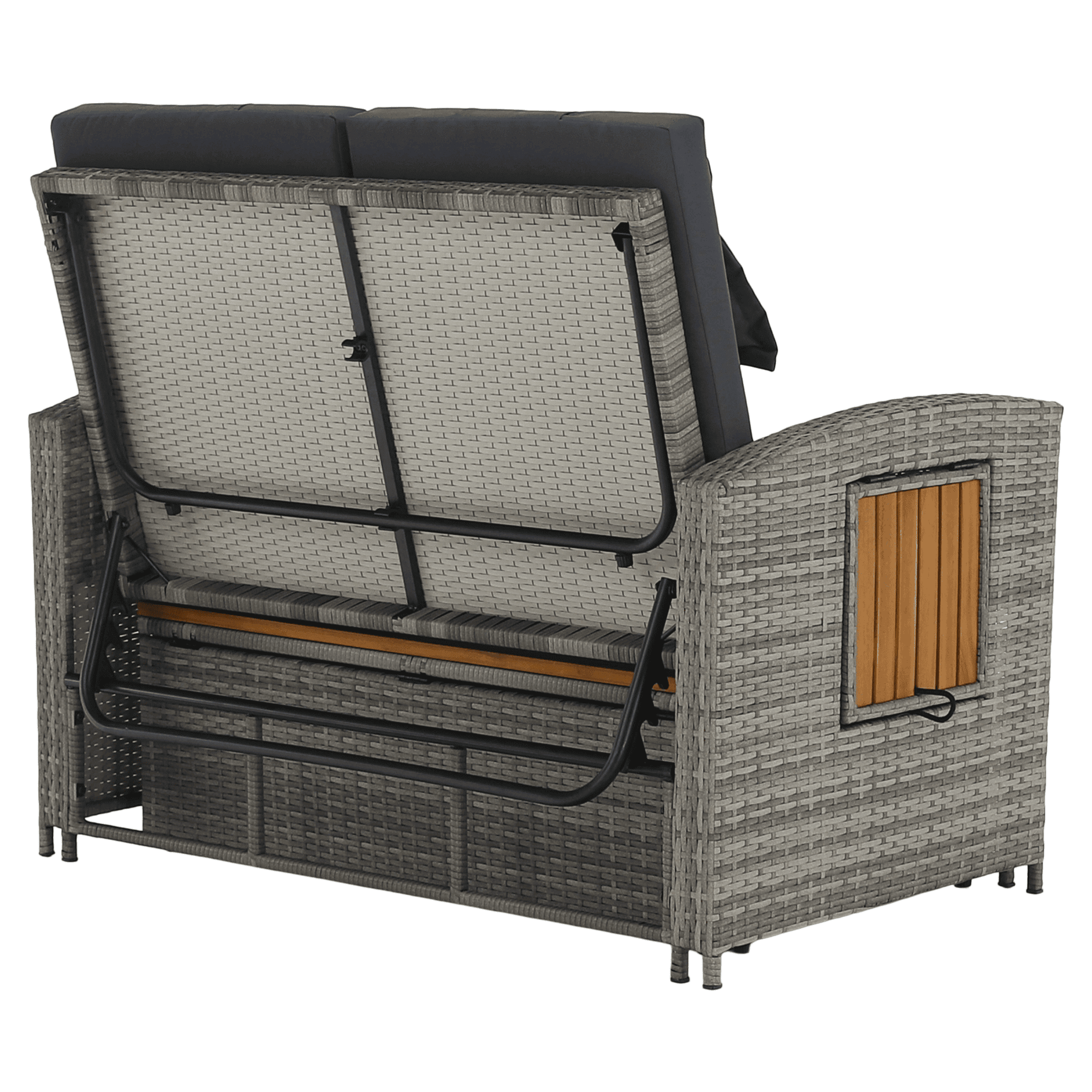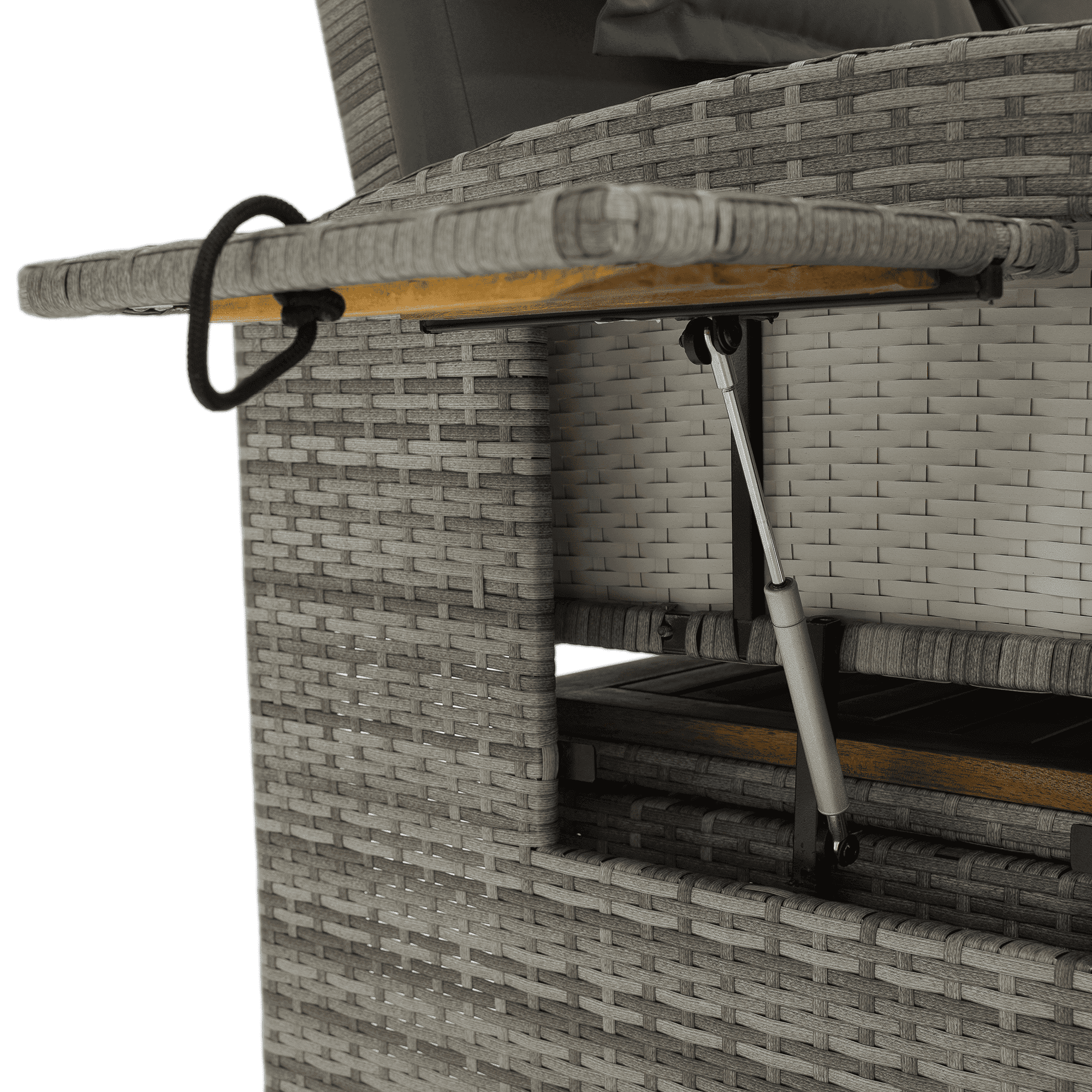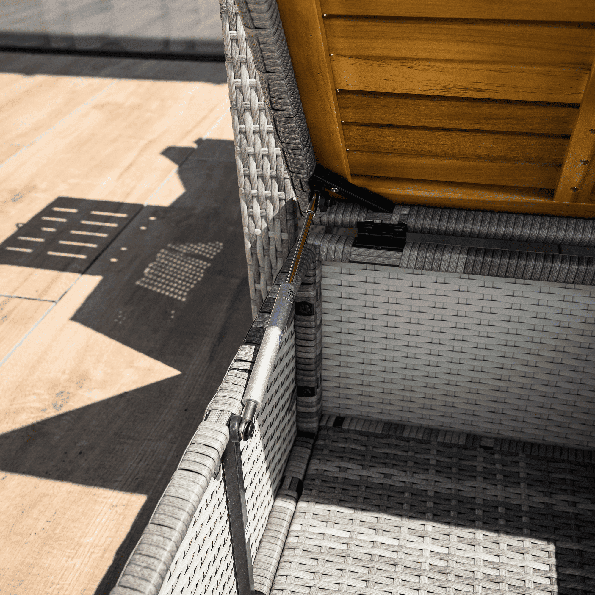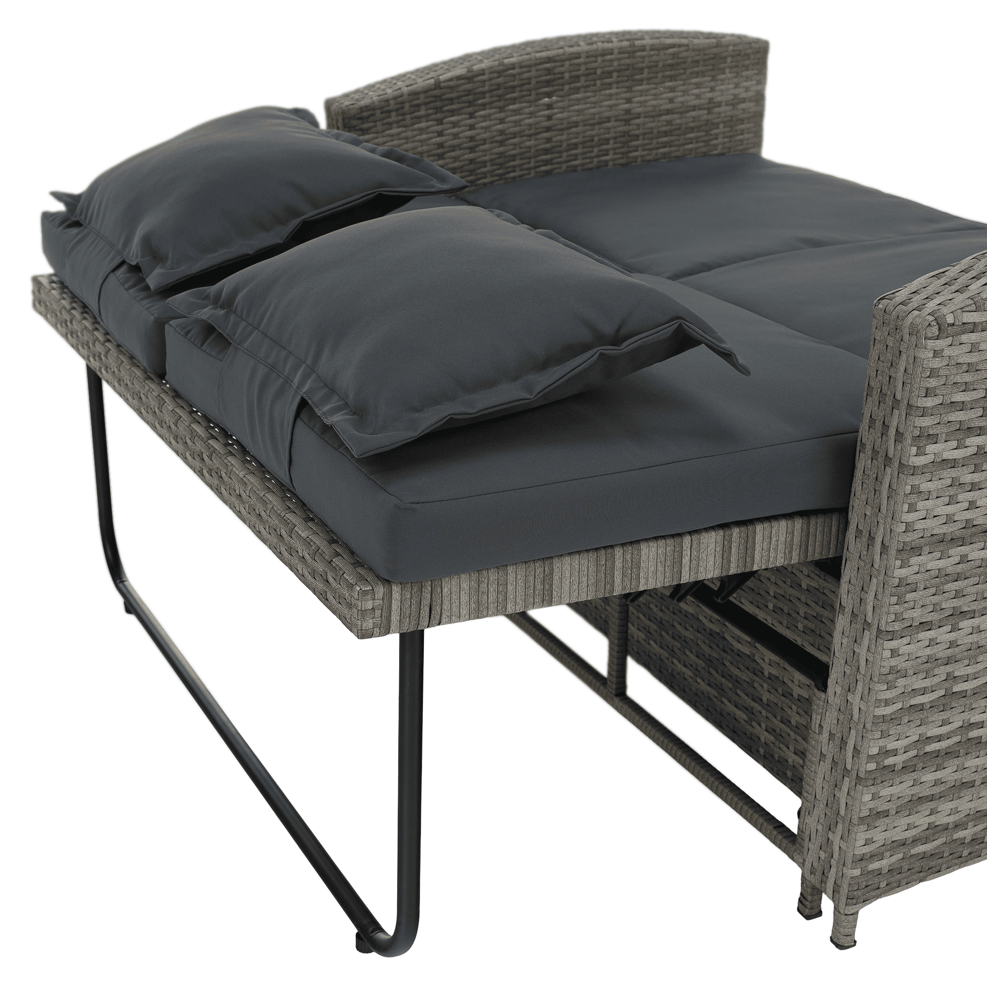 Material: ratan tehnic/oţel/ţesătură/lemn de salcâm Rezistenţa ţesăturii la frecare conform testului Martindale: 95 000 cicluri de frecare Culoare: gri/naturală Dimensiuni canapea (lxAxh): 115/173x69x92 cm Înălţimea părţii de şezut fără pernă: 40 cm Înălţimea părţii de şezut cu pernă: 46 cm Adâncimea părţii de şezut: 49 cm Lăţimea părţii de şezut: 103 cm Dimensiuni bancă (lxAxh): 99×55,5×33 cm Înălţimea părţii de şezut fără pernă: 33 cm Înălţimea părţii de şezut cu pernă: 45 cm Dimensiunile măsuţei pliabile (lxA): 29×29 cm Lăţime spate: 103 cm Dimensiuni de dispunere (lxL): 103×165 cm Înălţime cotieră: 65 cm Portanţă: 130 kg Greutate: 32 kg Set din 2 piese Canapea Bancă 2x măsuţe auxiliare batante Spătar reglabil 4 poziţii de înclinare a spătarului Cu cotiere Livrat cu perne Husă detaşabilă şi impermeabilă Husele pot fi spălate la temperatura de 30°C Nu uscaţi husele în uscător, nu folosiţi înălbitor, nu curăţaţi chimic şi nu călcaţi Deschiderea capacului băncii cu piston hidraulic Potrivit pentru unelte de grădină, jucării, perne, pături, banca se poate împingere sub canapea Utilizare versatilă Design modern Design natural Potrivită pentru utilizare în exterior Rezistent la intemperii Vă recomandăm să protejaţi produsul de intemperii pentru a prelungi durata de viaţă a produsului Livrat dezasamblat