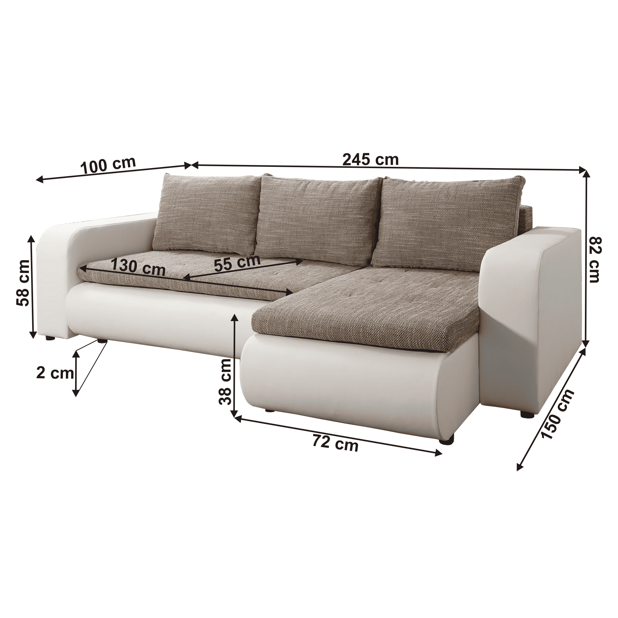 Canapea extensibilă, alb/maro, dreapta, BURAN ROH
