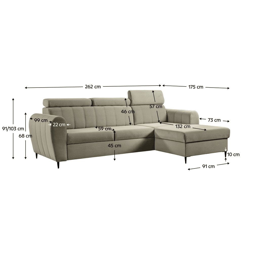 Dimensiuni (LxAxA): 262x175x91/103 cm