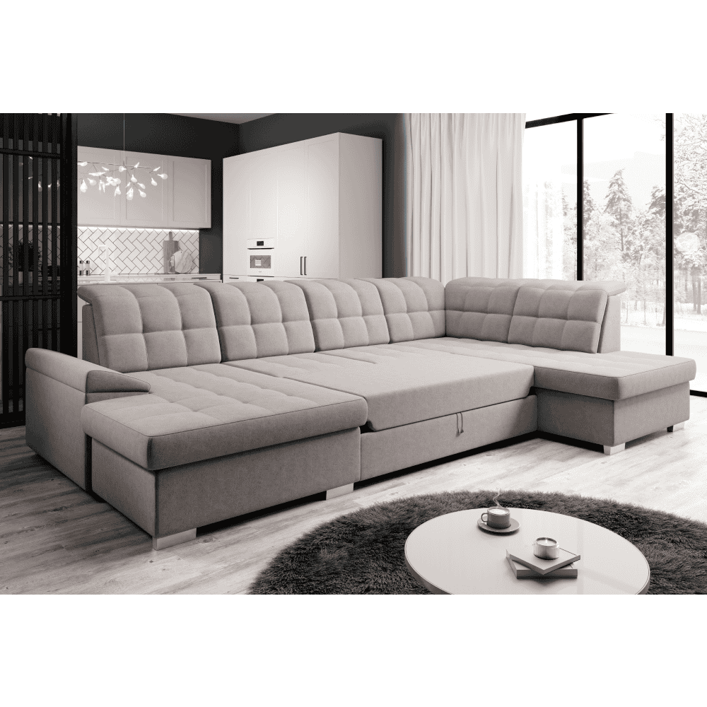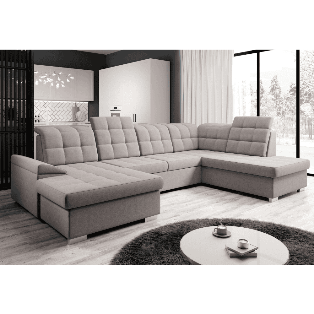 Material tapiţerie: ţesătură Soro 23 Rezistenţa la frecare a ţesăturii conform testului Martindale: 90.000 Culoare tapiţerie: gri-bej Taupe Dimensiuni (LxAxÎ): 320×202/155×88/103 cm Suprafaţa pentru dormit (LxL): 120×252 cm Înălţime scaun: 41 cm Adâncime scaun: 54 cm Lăţime otoman: 98 cm Lăţime scaun: 135 cm Cu picioare Materialul picioarelor: plastic Culoarea picioarelor: argintiu Înălţimea compartimentului inferior de la podea: 5 cm Capacitate de susţinere per persoană: 90 kg Umplutura: arcuri ondulate + spumă poliuretanică, Colţar extensibil tapiţat integral, în formă de ?U? , cu două spaţii de depozitare, Tetiere ajustabile, Variantă pentru partea dreaptă, Livrat dezasamblat, Posibilitatea de a alege dintre 7 nuanţe de culoare ale ţesăturii Soro la preţul 9 329,-. cu termenul de livrare de 6-8 săptămâni. La o comandă individuală, este necesară o plată în avans de 20% din suma respectivă. După achitarea avansului, comanda dumneavoastră va intra în producţie.